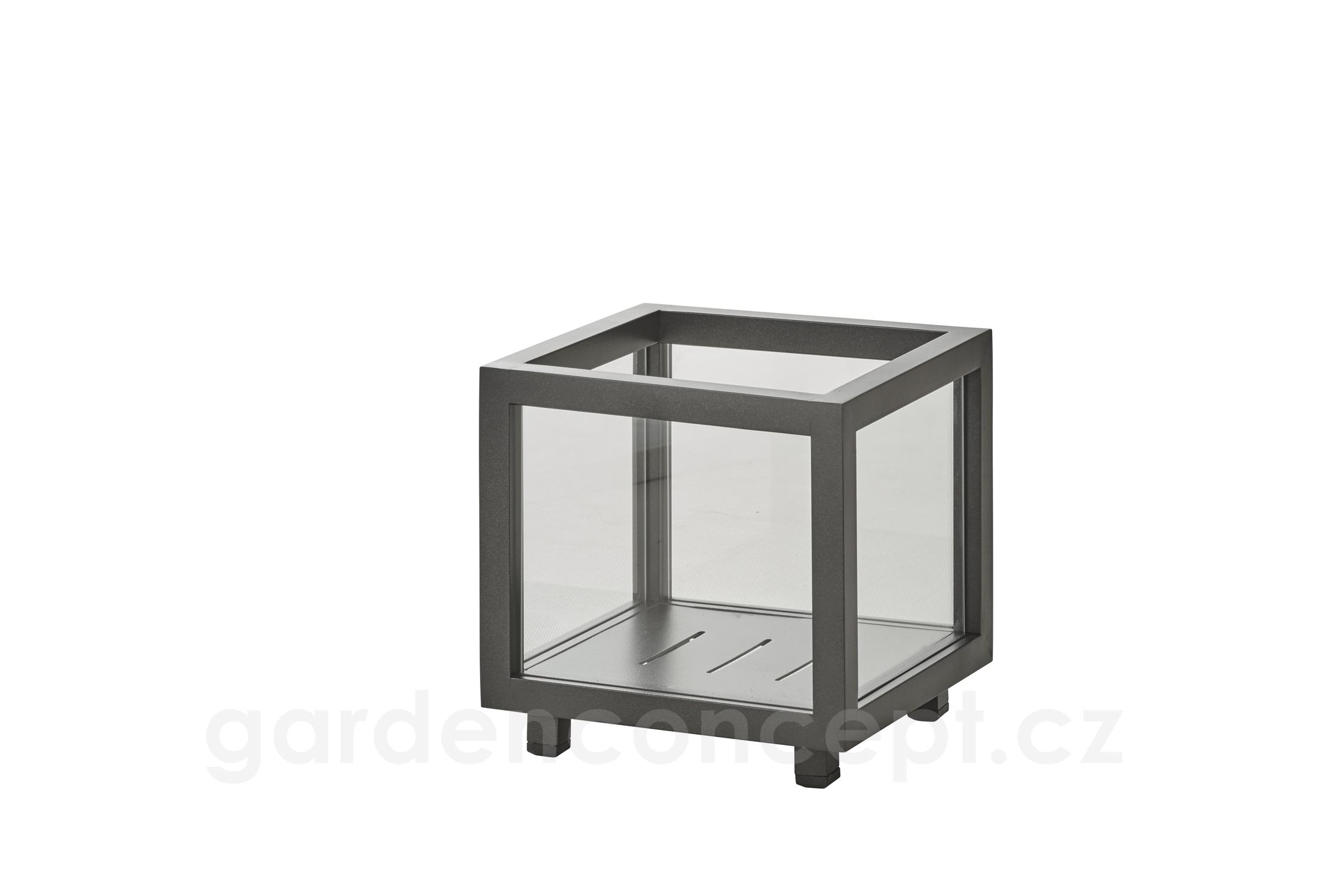 Hliníková venkovní svítilna/lucerna S Lightbox, Cane-line, 23x23x22 cm, rám hliník barva lava grey, sklo, lze koupit jen po 2 ks