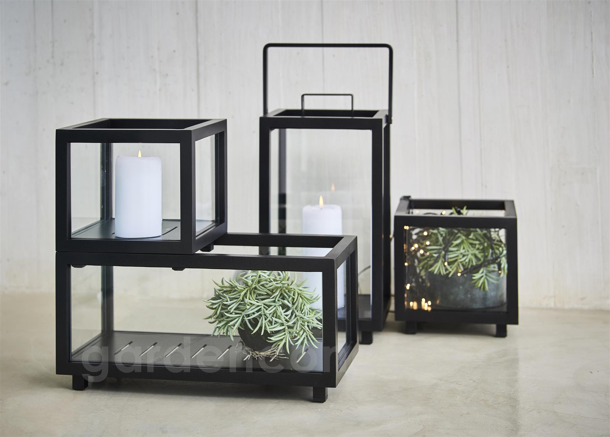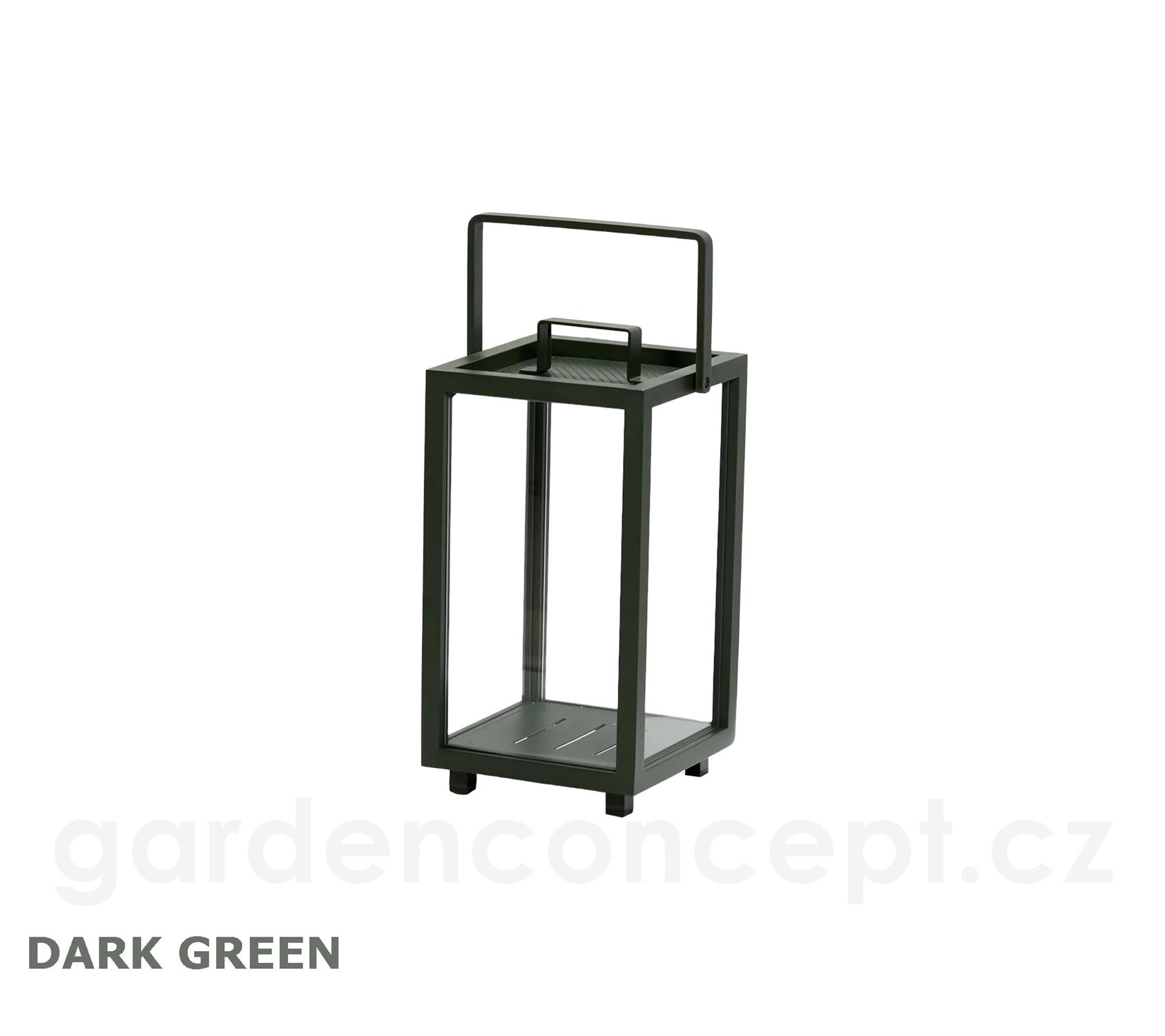 Hliníková venkovní svítilna/lucerna S Lighthouse, Cane-line, 23x23x42 cm, rám hliník barva dark green, sklo, lze koupit jen po 2 ks