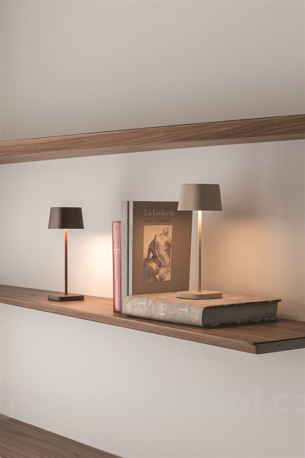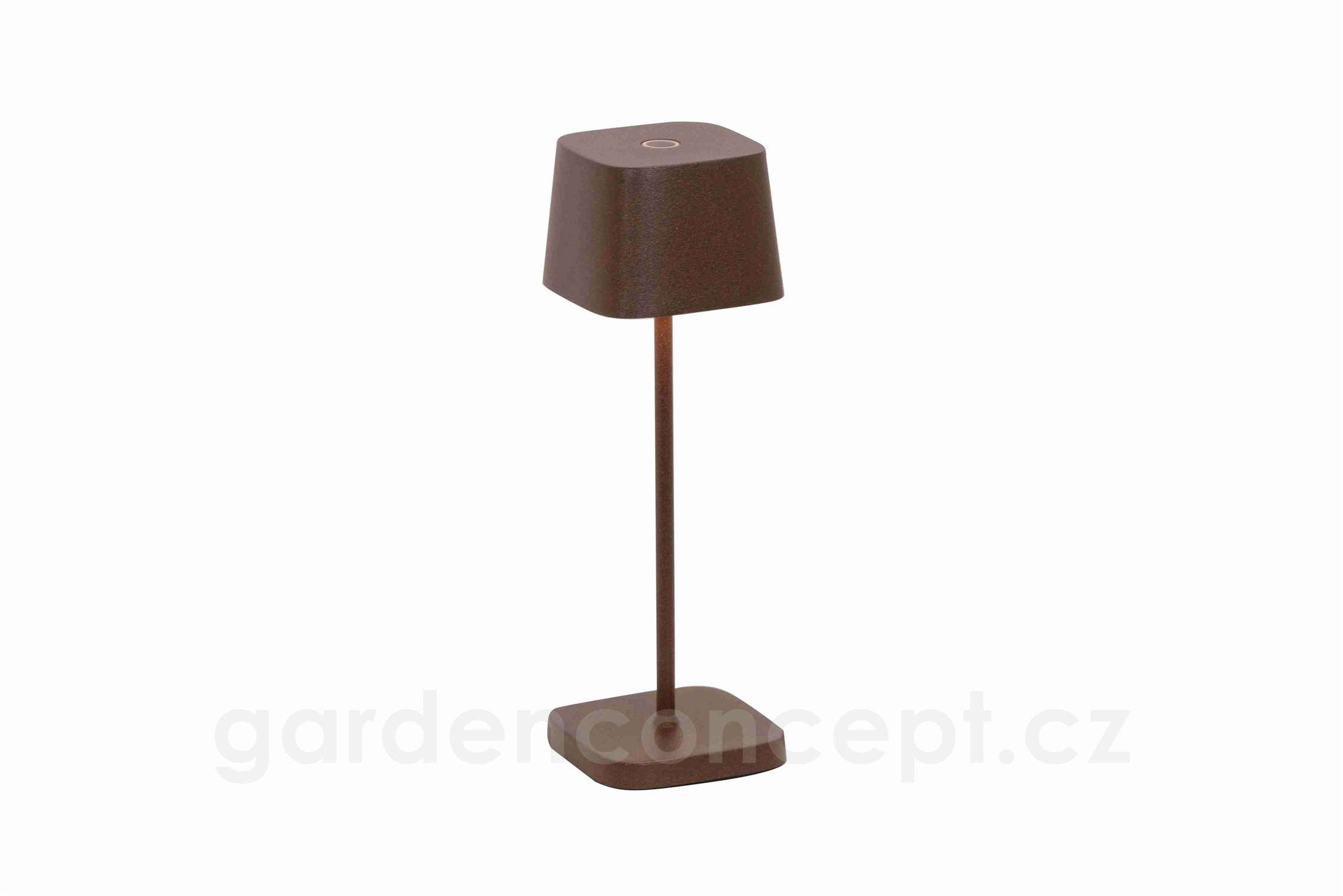 Stolní venkovní LED lampička Ofelia Micro table, Zafferano, výška 20 cm x 6,7 cm, x 6,7 cm, hliník tmavě mahagonová (painted rust) vč.nabíječky