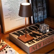 Stolní venkovní LED lampička Poldina Mini Pro, Zafferano, výška 30 cm x průměr 11 cm, hliník tmavě mahagonová (painted rust) vč.nabíječky