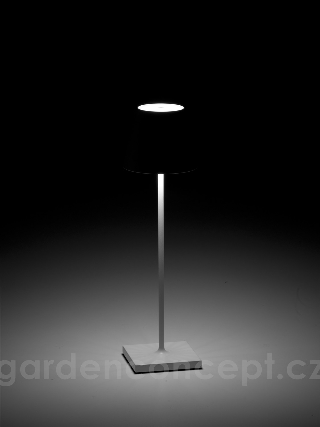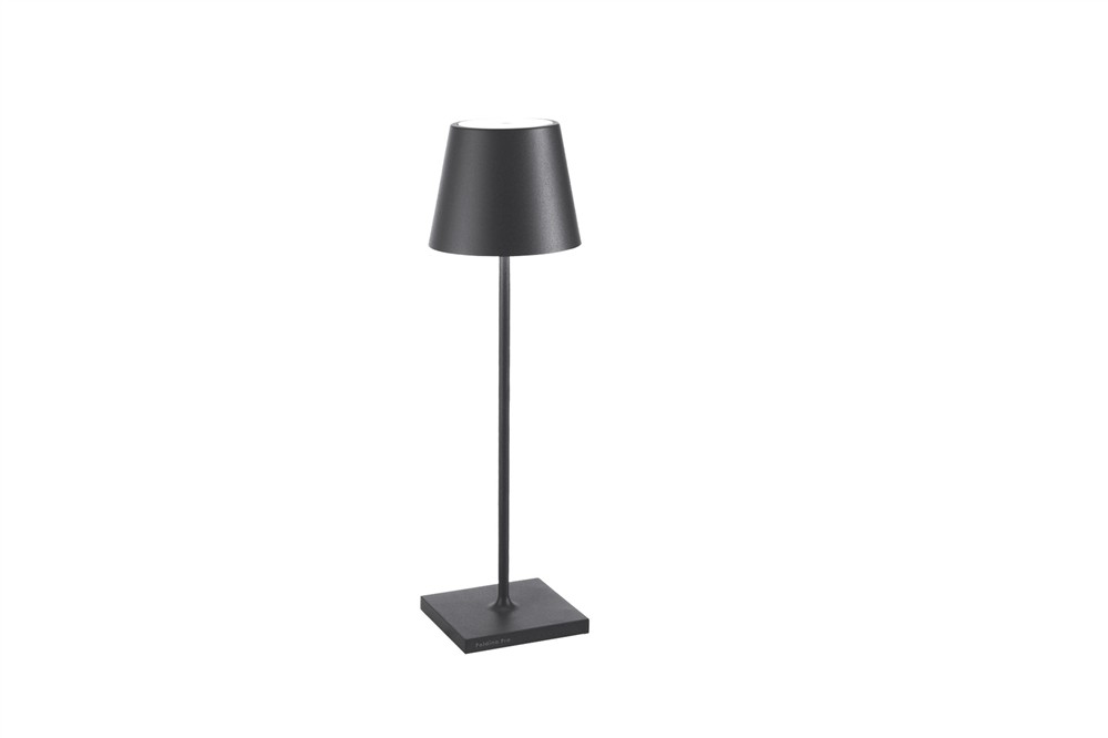 Stolní venkovní LED lampička Poldina Pro, Zafferano, výška 38 cm x průměr 11 cm, hliník tmavě šedý mat (dark grey), vč. nabíječky