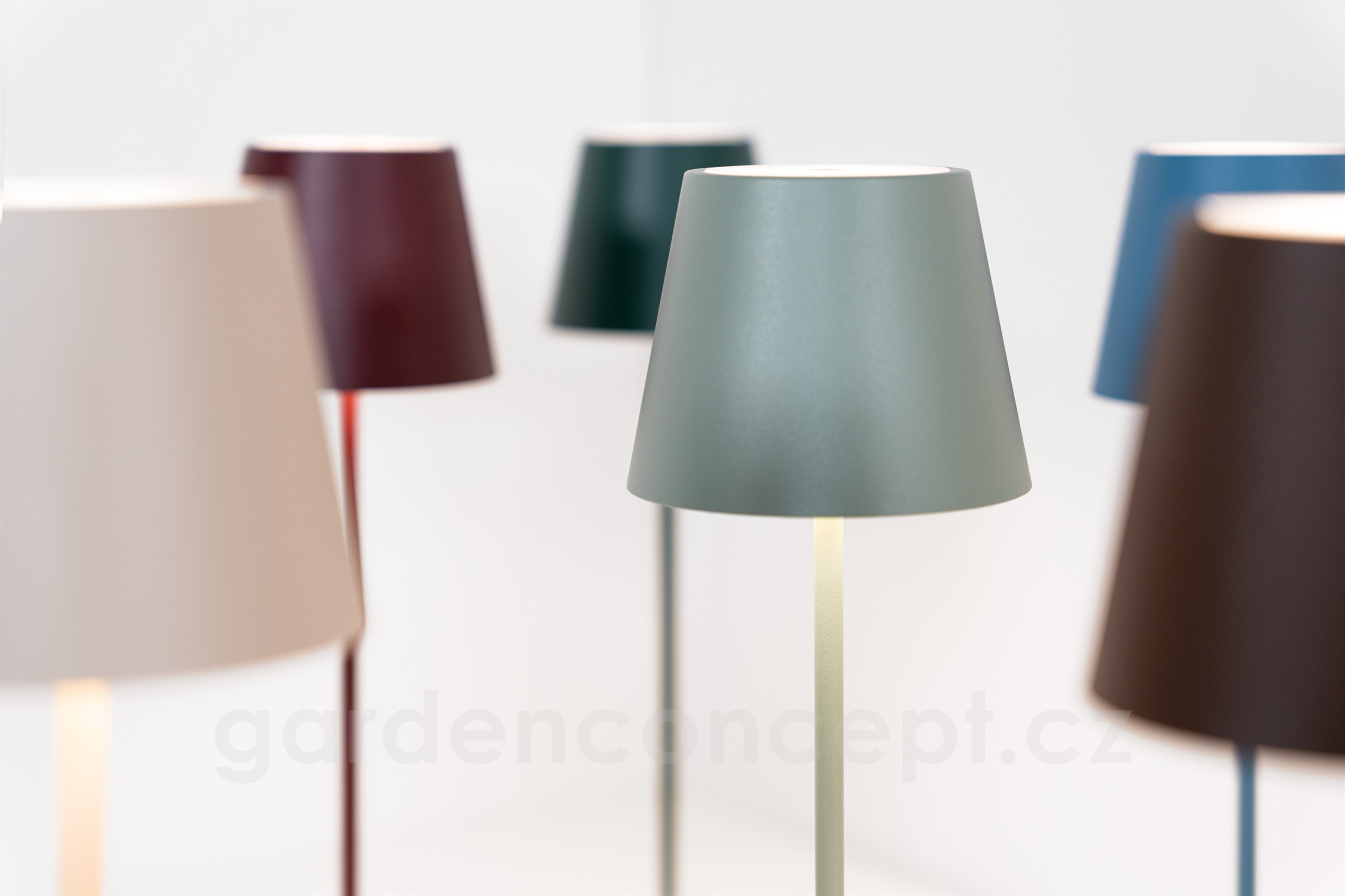Stolní venkovní LED lampička Poldina Pro, Zafferano, výška 38 cm x průměr 11 cm, hliník zelená barva (sage green), vč. nabíječky
