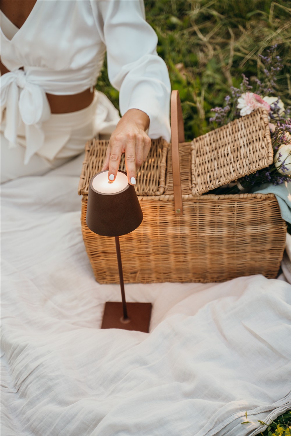 Lampička je přenosná s nabíjecí baterií, výdrž svícení ca 9 hodin po úplném nabití.