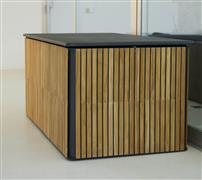 Teaková zahradní truhla kolekce Combine značky Cane-line. Truhla je vyrobena z lakovaného hliníku v kombinaci s teakovým dřevem.
