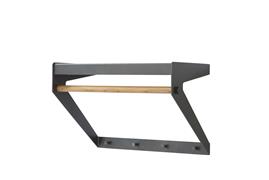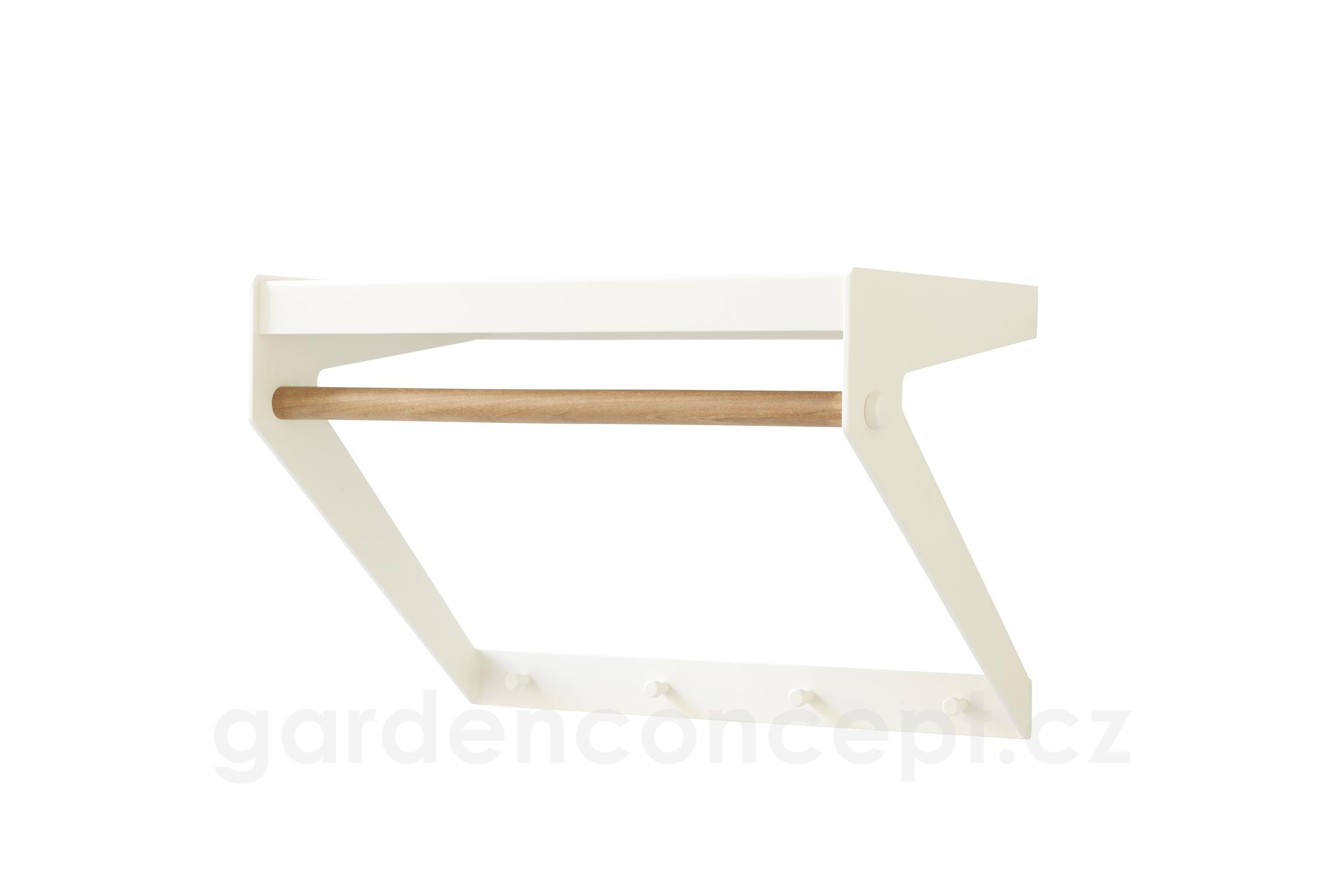 Hliníkový věšák na kabáty Copenhagen značky Cane-line. Vešák je vyroben z lakovaného hliníku v kombinaci s teakovým dřevem. Využití věšáku také jako police.