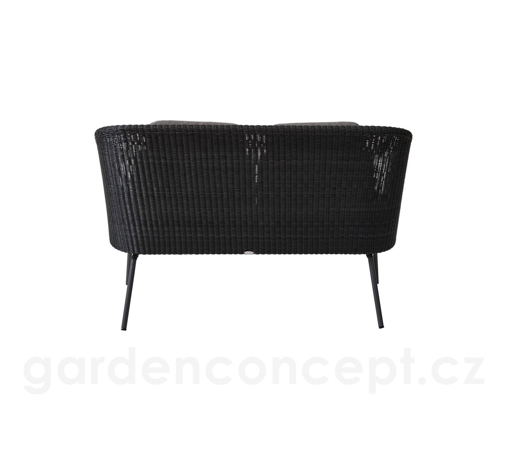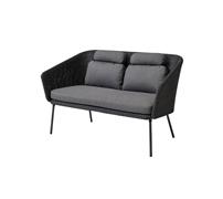 Jídelní lavice Mega značky Cane-line. Rám venkovní lavice je z kovu. Výplet z umělého ratanu. V šedé barvě (graphite).