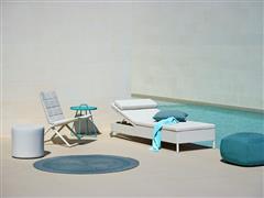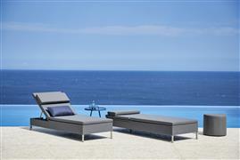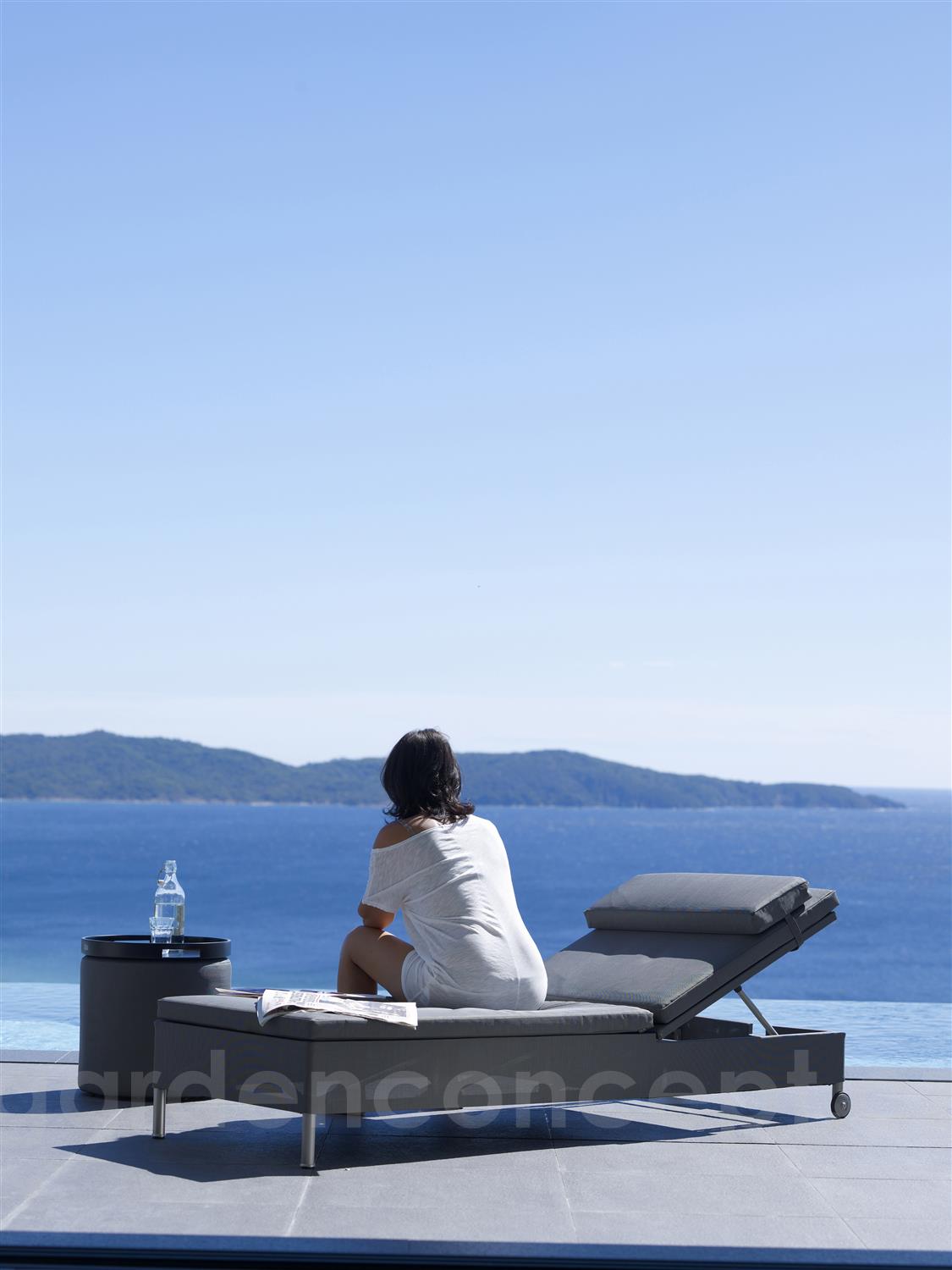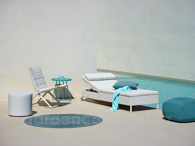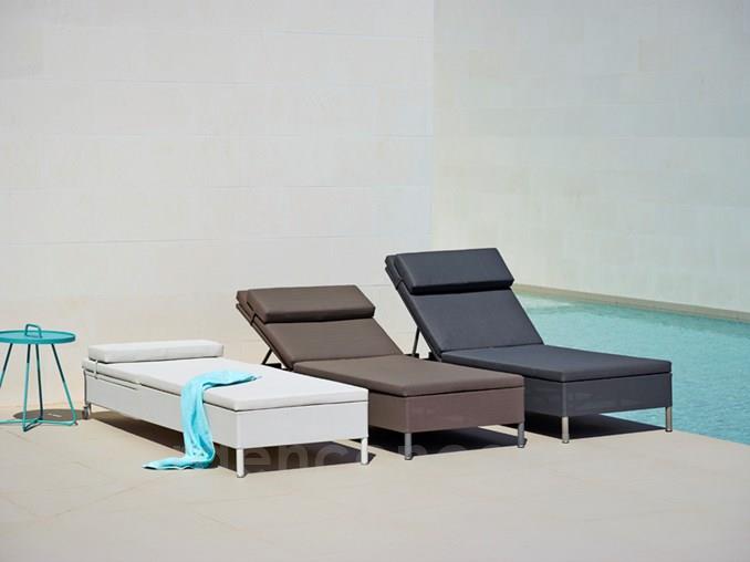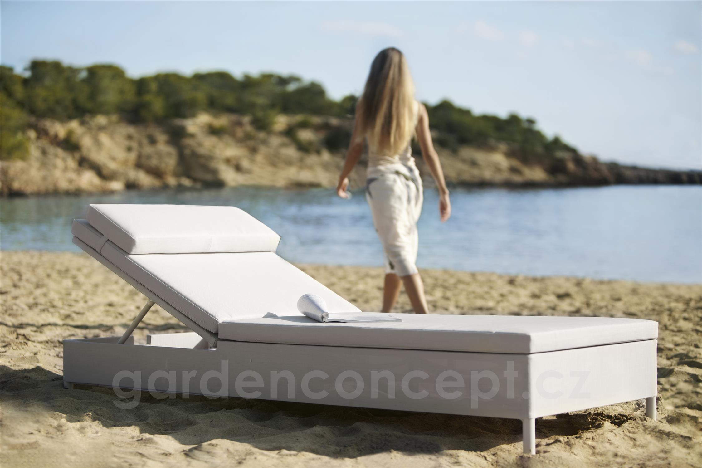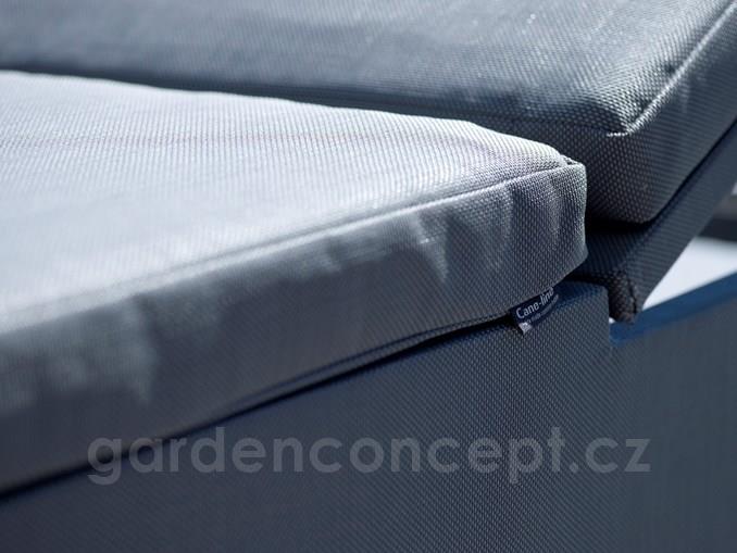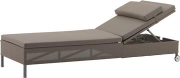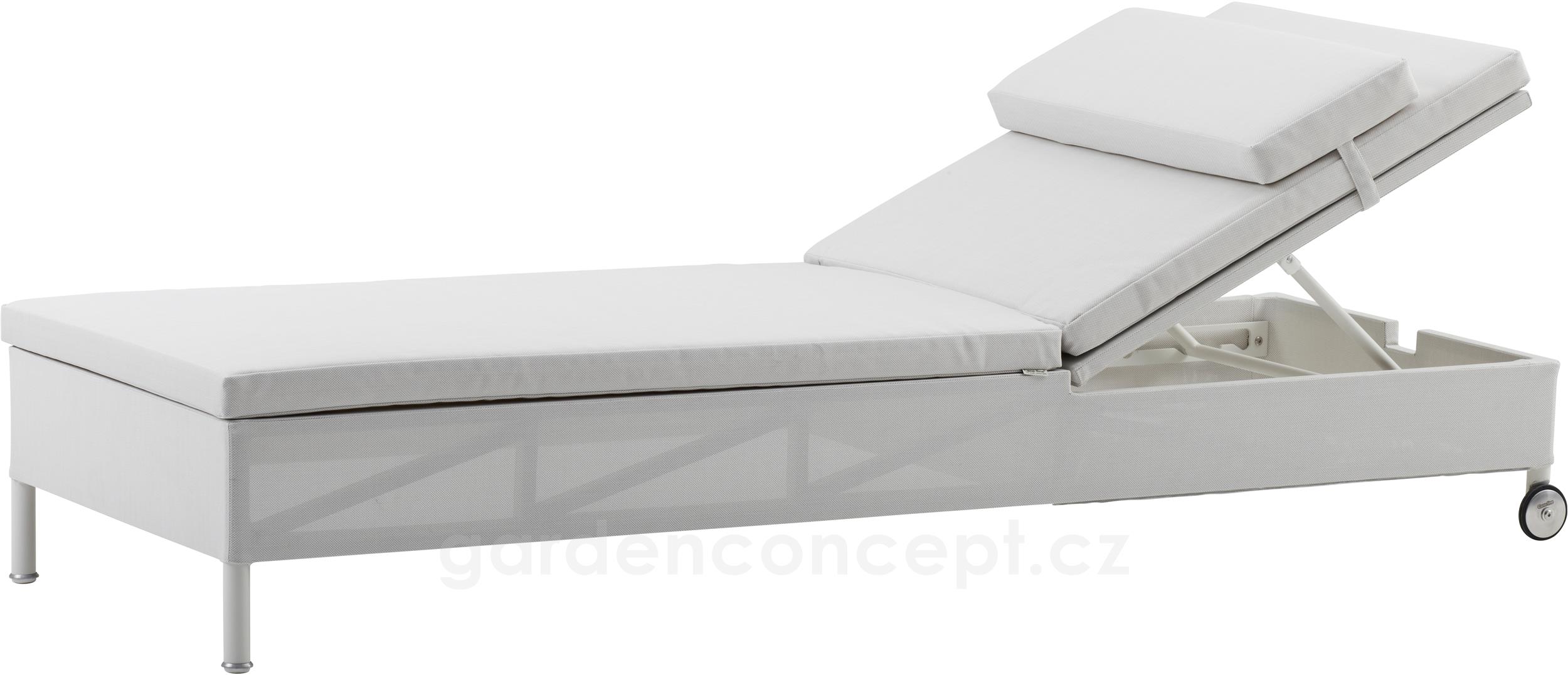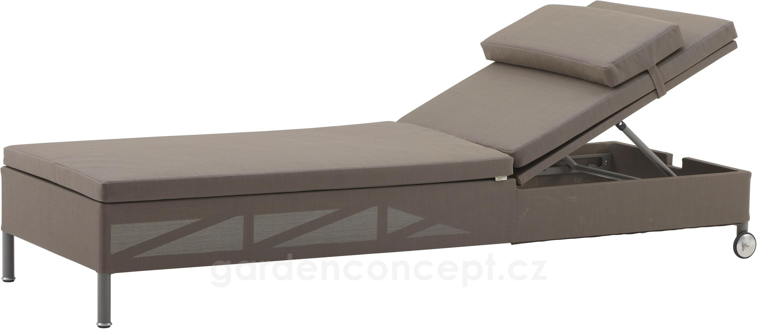Zahradní leháítko Rest značky Cane-line. Konstrukce lehátka je z hliníku, výplet z textilenu. Vč. celopotahu a polštářku pod hlavu z venkovní látky a rychleschnoucí výplně. Barva: šedá, bílá, hnědá.