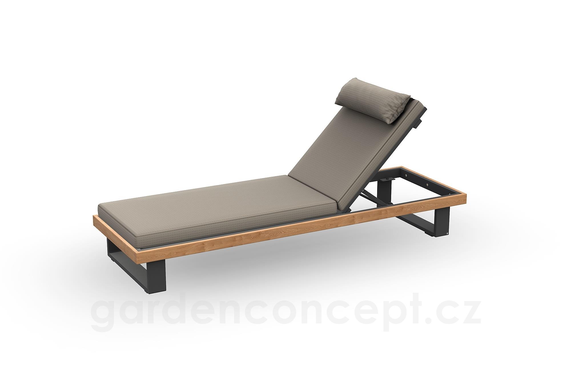 Polohovací lehátko Truro, Jati Kebon, 223x74x28 cm, rám teak/hliník barva charcoal mat, bez celopotahu