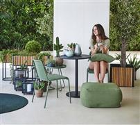 Teakový okrasný květináč kolekce Flowerbox značky Cane-line. Zahradní květináč je vyroben z lakovaného hliníku v kombinaci s teakovým dřevem.