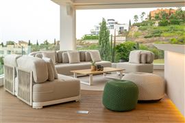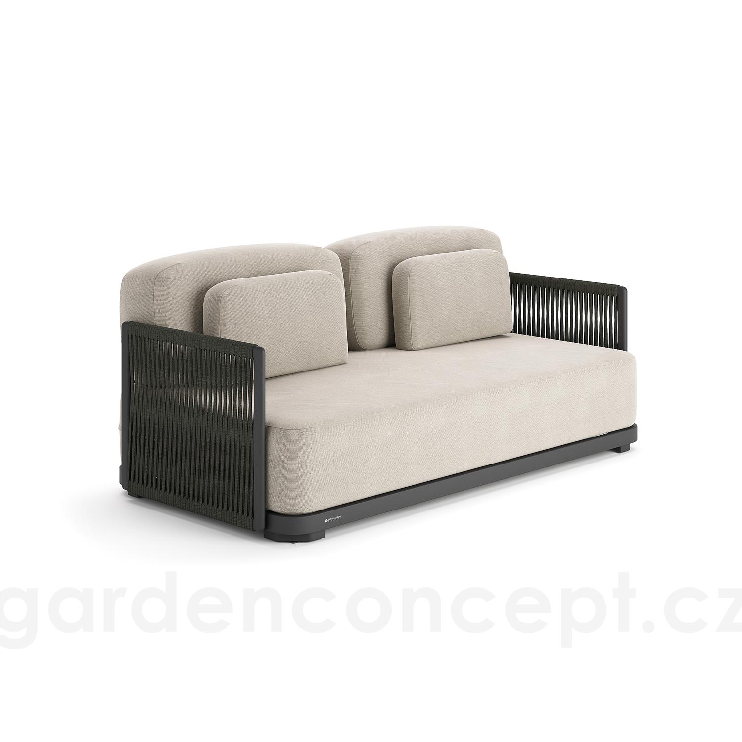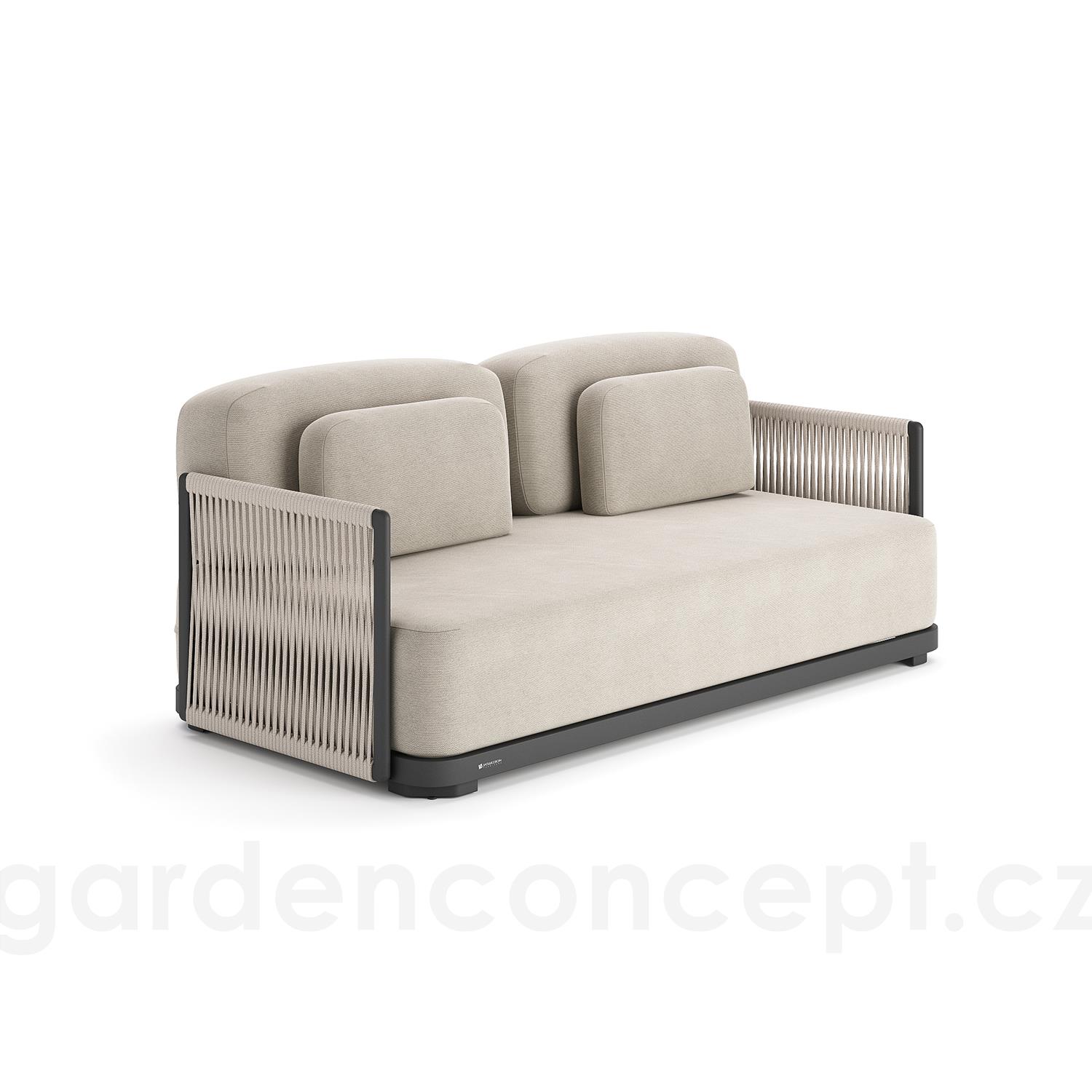 2-místná pohovka Durbuy, Jati Kebon, 180x90x61 cm, rám hliník, výplet lanko, sedáky venkovní látka Sunbrella, barva dle vzorníku