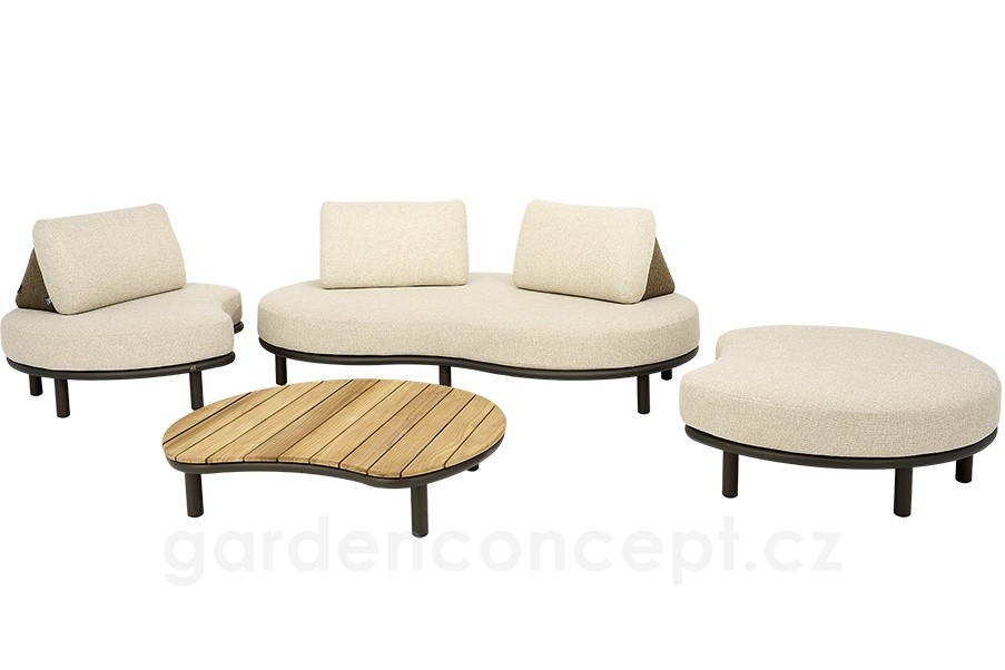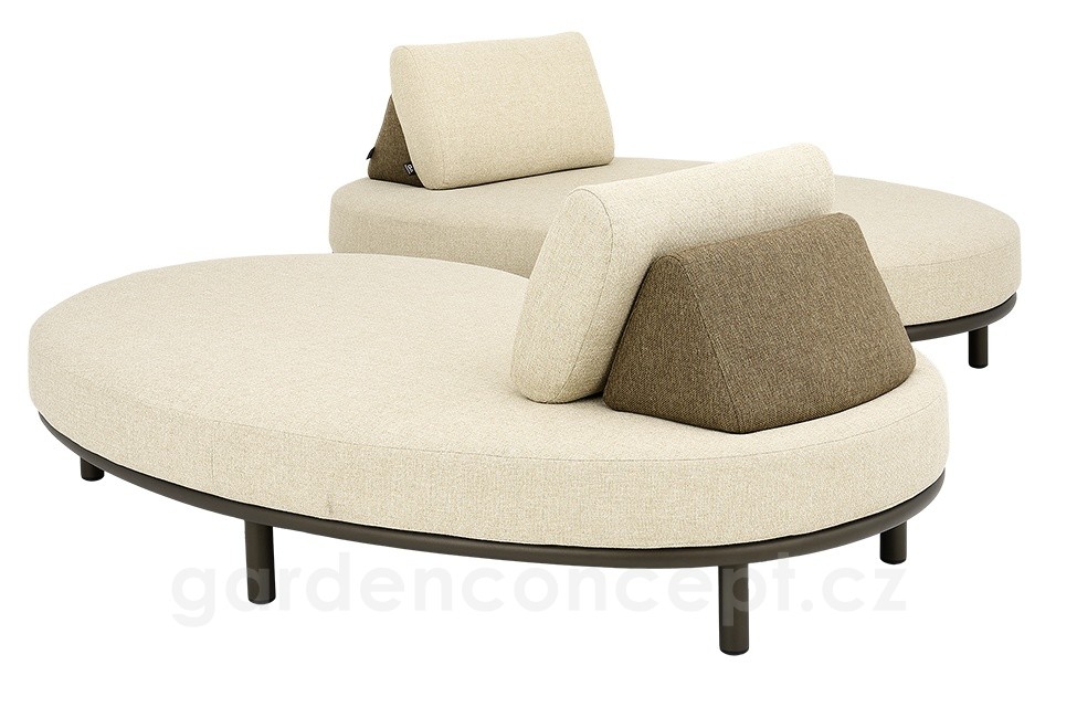 2-místný modul Moon Island, Apple Bee, oválný 196x110x40 cm, rám hliník Bronze, sedáky venkovní látka Cotton Flower