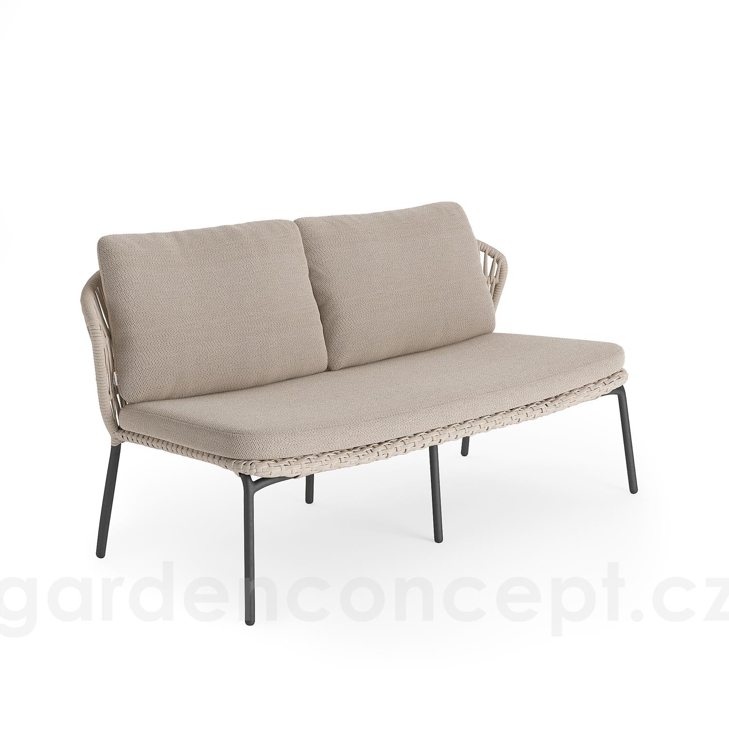 Pohovka 2-místná Lima, Jati Kebon, 164x81x81 cm, rám hliník barva charcoal mat, výplet lanko 14 mm barva beige, bez polstrů