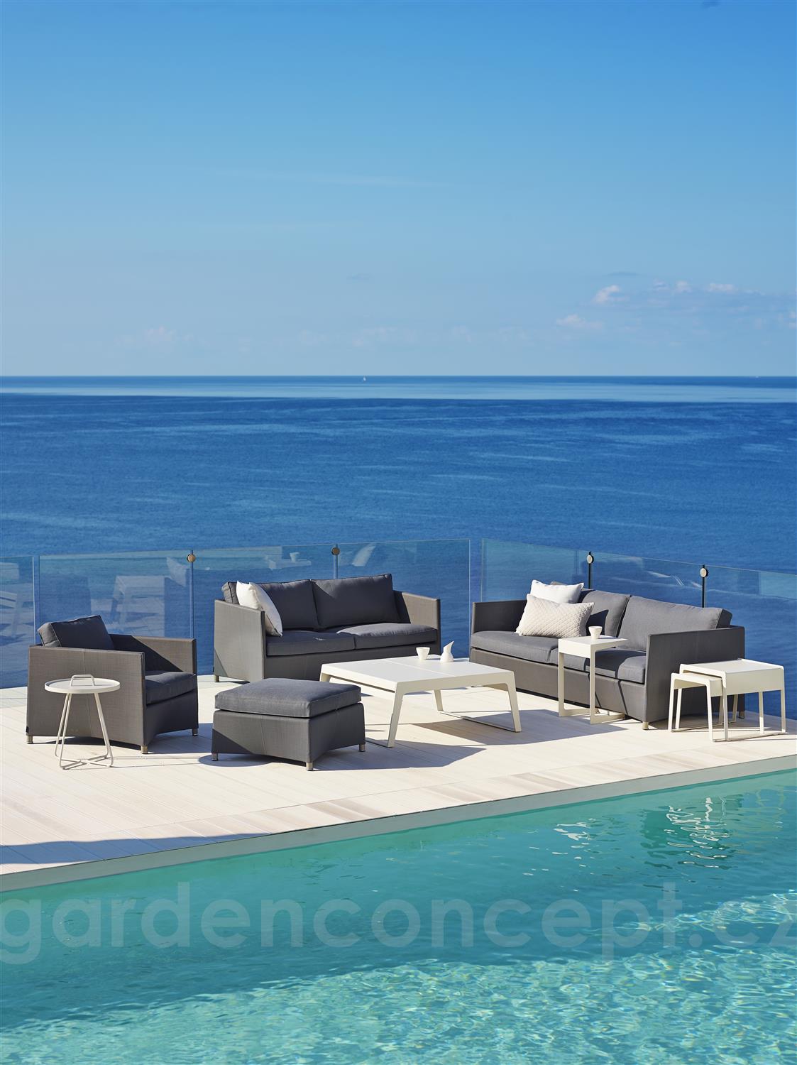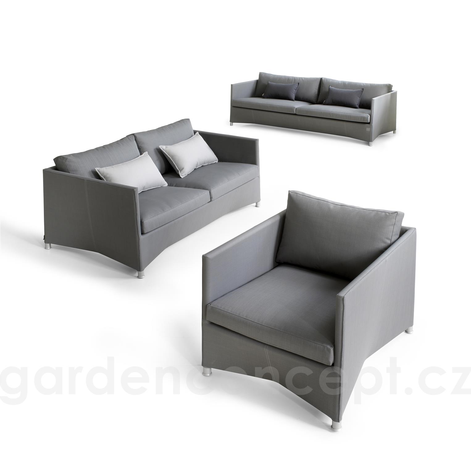Konstrukce pohovky je z hliníku. Výplet je z textilenu (Cane-line Tex). Sedáky a polštáře Sunbrella, výplň rychleschnoucí pěna. V několika barevných provedeních.