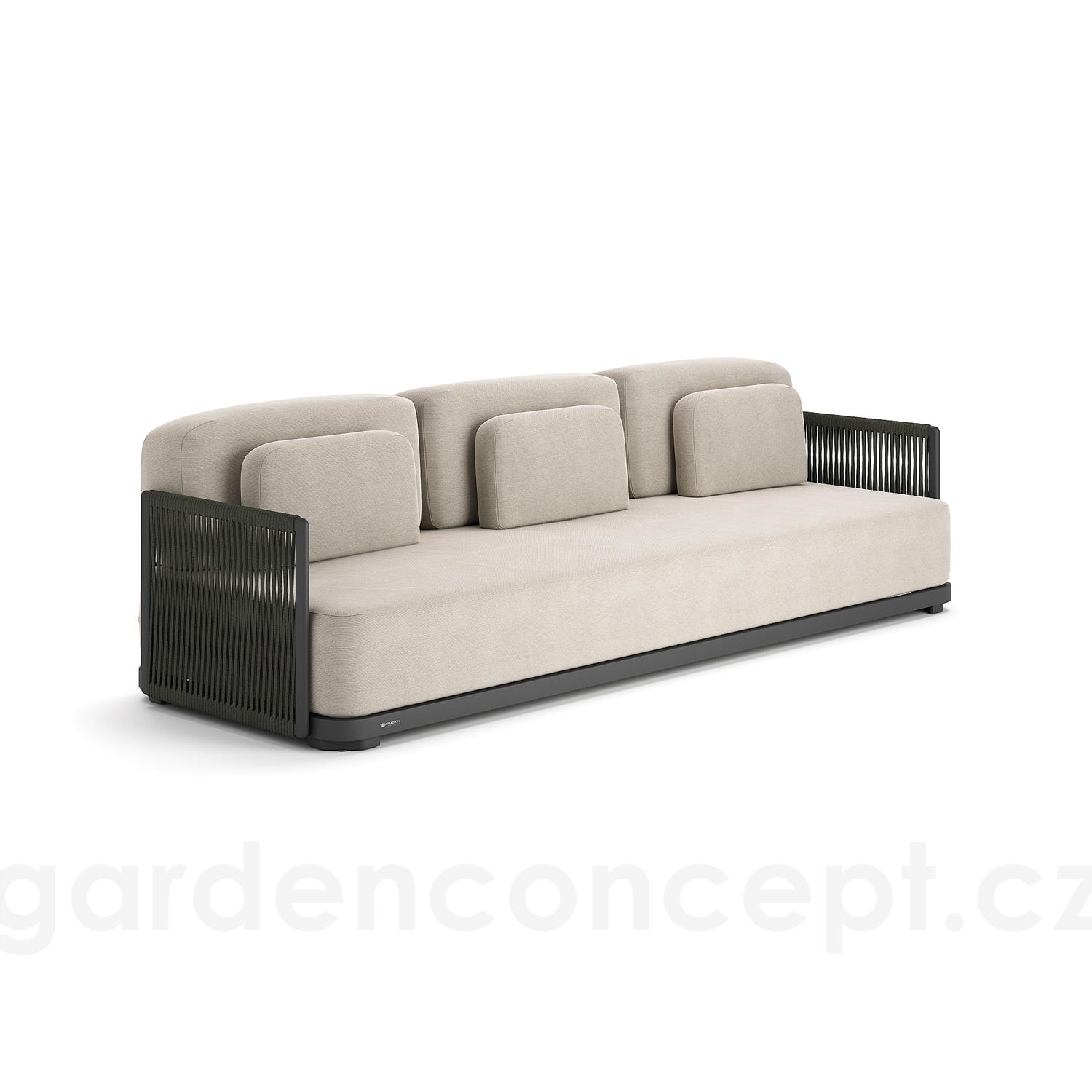 3-místná pohovka Durbuy, Jati Kebon, 270x90x61 cm, rám hliník, výplet lanko, sedáky venkovní látka Sunbrella, barva dle vzorníku