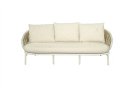 3-místná pohovka Pine Key, Apple Bee, 203x83,5x79 cm, rám hliník Oyster (krémová), výplet umělý ratan Seashell, sedáky venkovní látka Cotton Flower