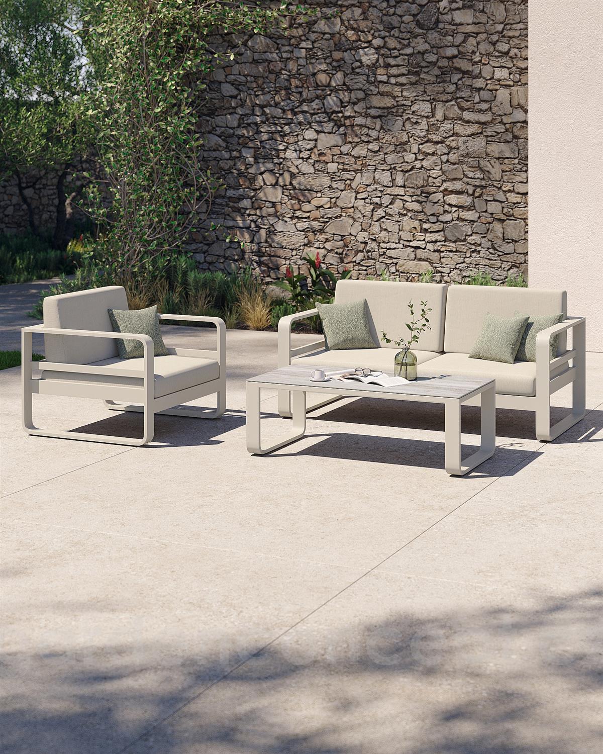 Pohovka 2-místná Reno, Jati Kebon, 168x84x61 cm, rám hliník barva dune mat, bez polstrů