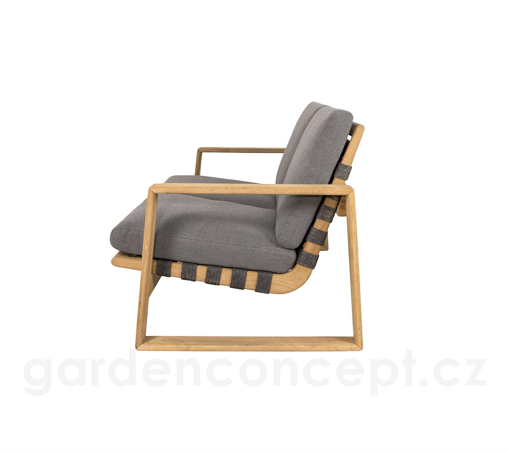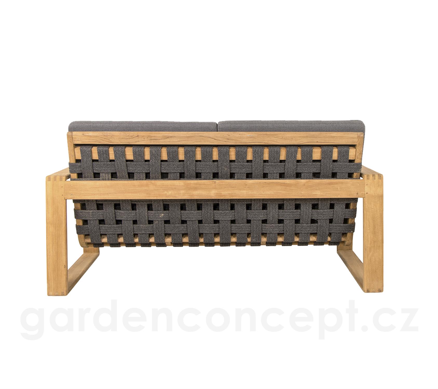 2-místná pohovka Endless Soft, Cane-line, 162x80x79 cm, rám teak, lankový výplet barva dark grey, sedáky venkovní látka AirTouch grey