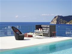 Konstrukce zahradní pohovky je z hliníku. Pohovka je potažena textilenem (Cane-line Tex). Sedáky a polštáře jsou z venkovní látky Sunbrella v šedé barvě (grey).