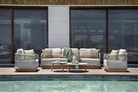 Teaková pohovka 3-místná Acri, Jati Kebon, teak, lanko, venkovní látka