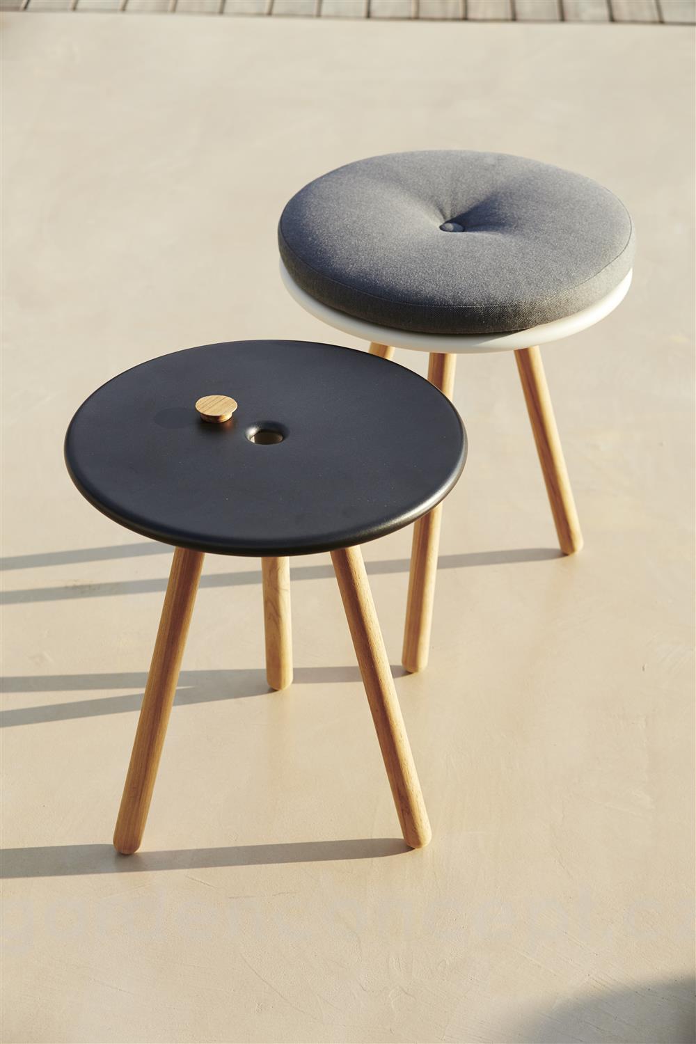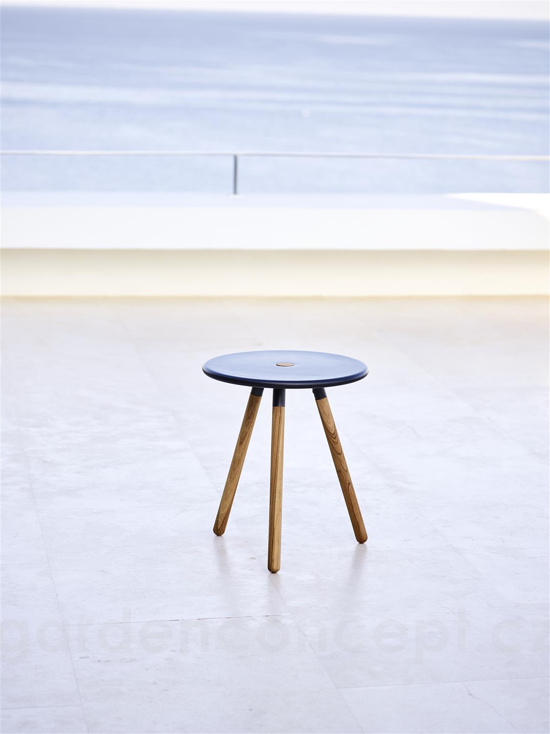 Odkládací stolek/podnožka/stolička Area, Cane-line, kulatý 40x47 cm, rám teak, deska hliník barva lava grey