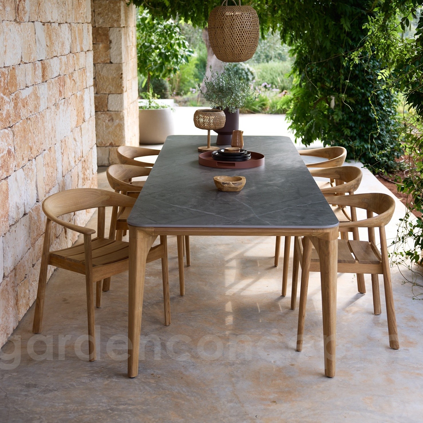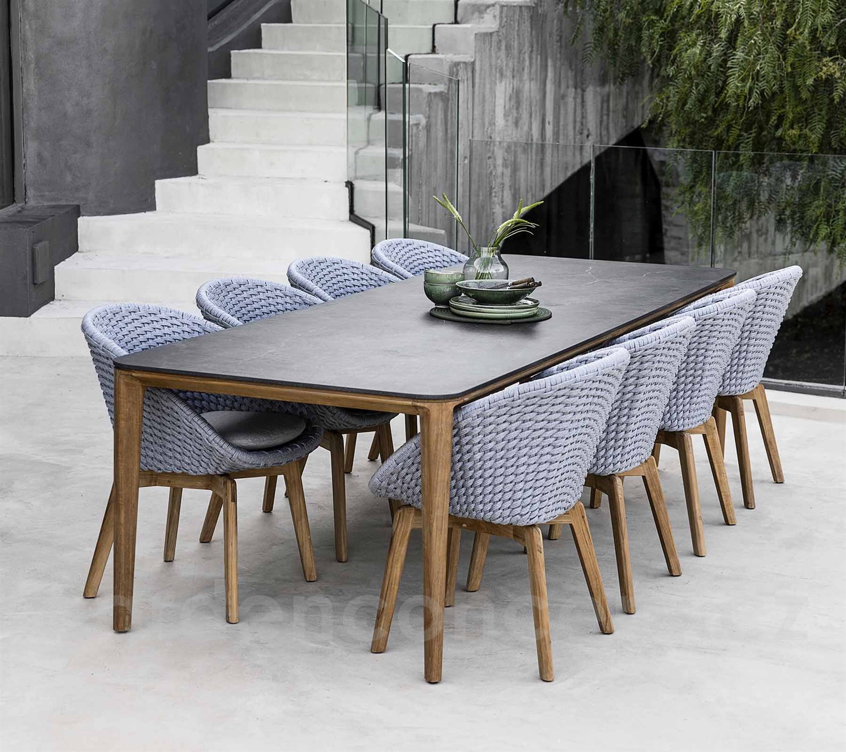 Jídelní stůl Aspect, Cane-line, obdélníkový 280x100 cm, teak, deska keramika