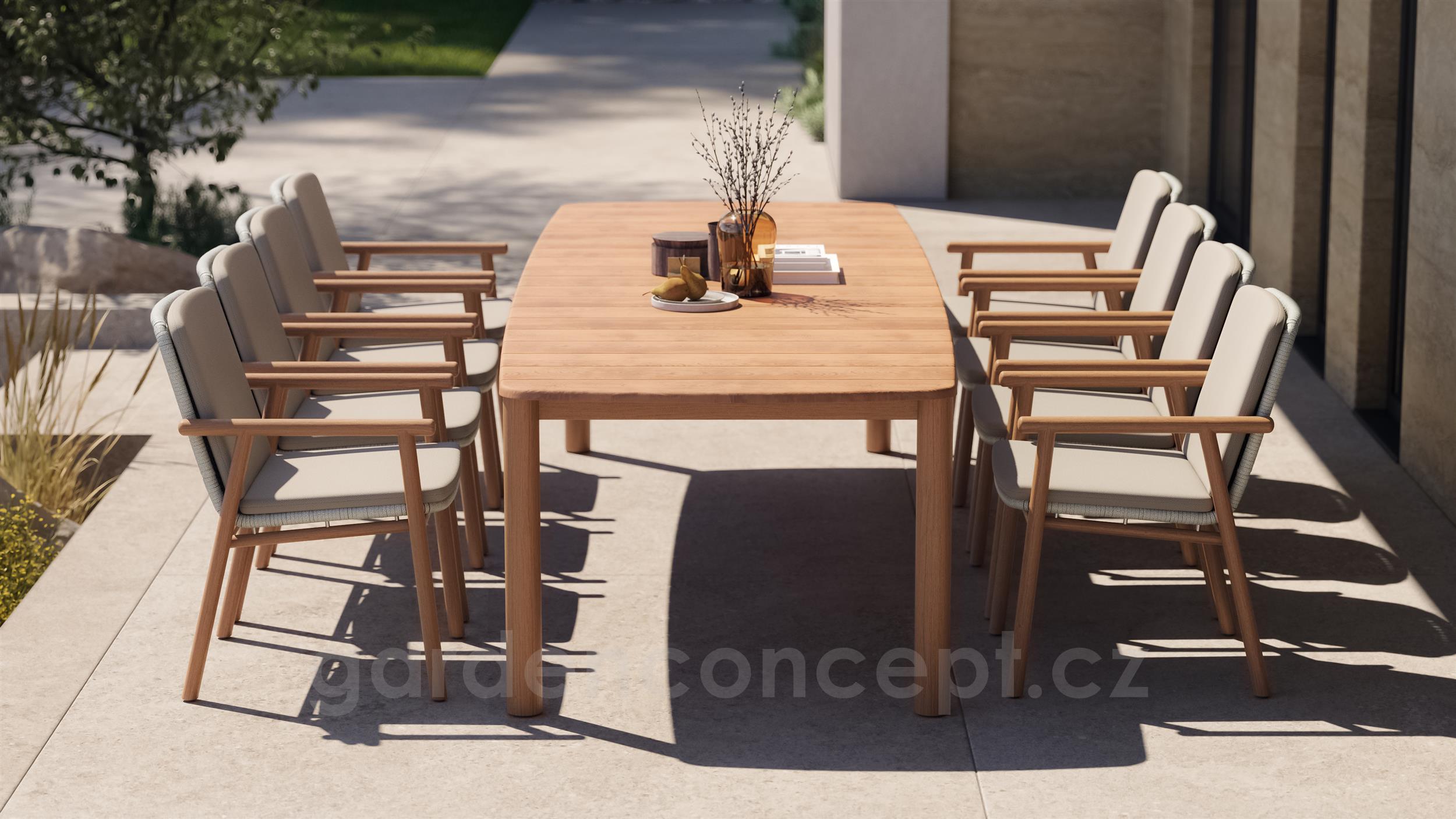Venkovní teakový jídelní stůl z kolekce Benoa od belgické značky Jati Kebon.