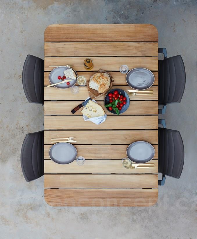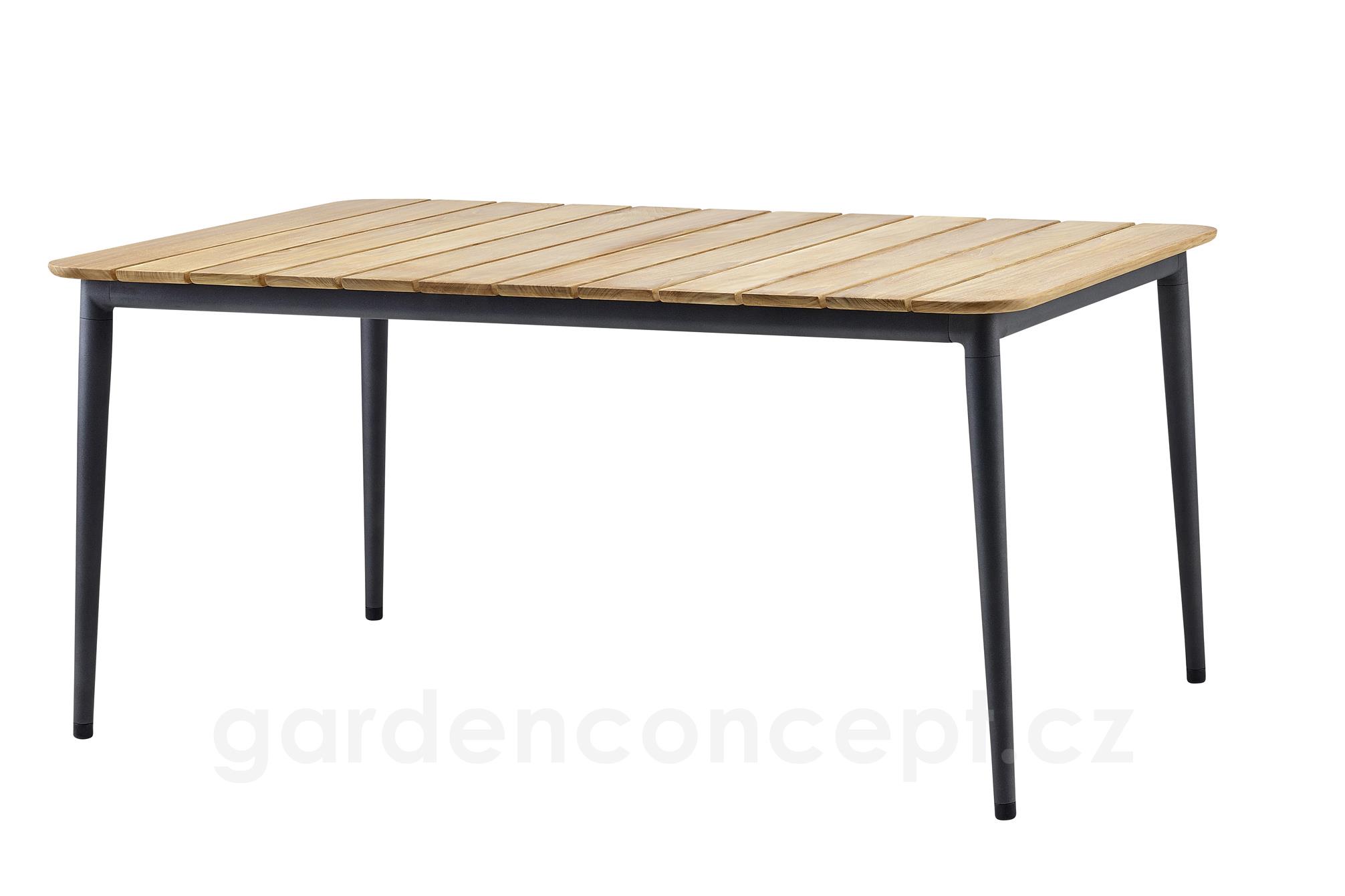 Jídelní stůl Core, Cane-line, obdélníkový 160x90x74 cm, rám hliník barva lava grey, deska teak