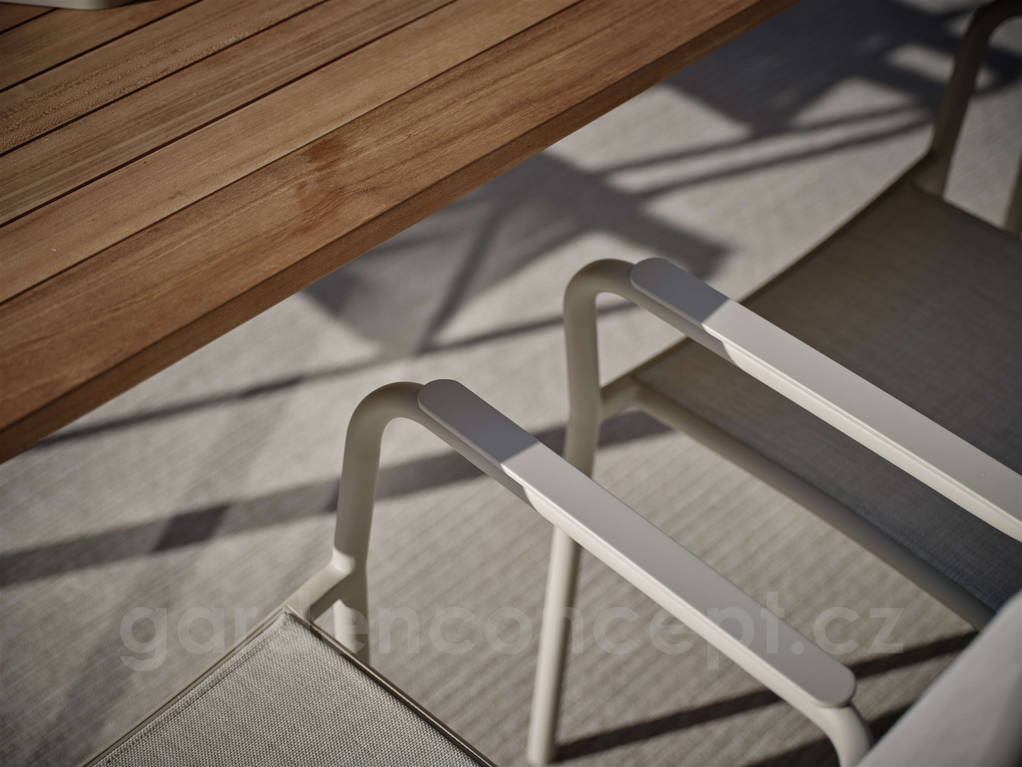 Stůl Interno, Stern, 220x100 cm, hliník čtvercový profil, deska teak
