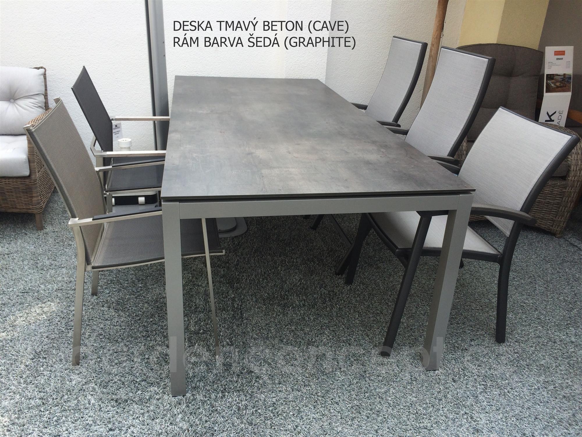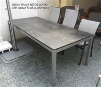 Hliníkový jídelní stůl Milano, obdélníkový 280x100x75 cm, barva rámu šedá (graphite), deska HPL tmavý beton (cave)