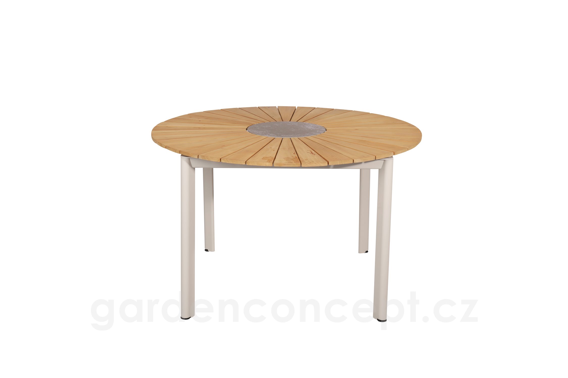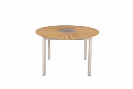 Jídelní stůl Mindo 101, kulatý 100 cm, hliník, teak, keramika
