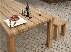 Jídelní stůl Titan značky Barlow Tyrie. Jídelní stůl je teakového dřeva, jemně boušeného teakového dřeva, díky kterému teakové dřevo získává rustikální vzhled. Rozměry: 180x99 cm, výška 75 cm.