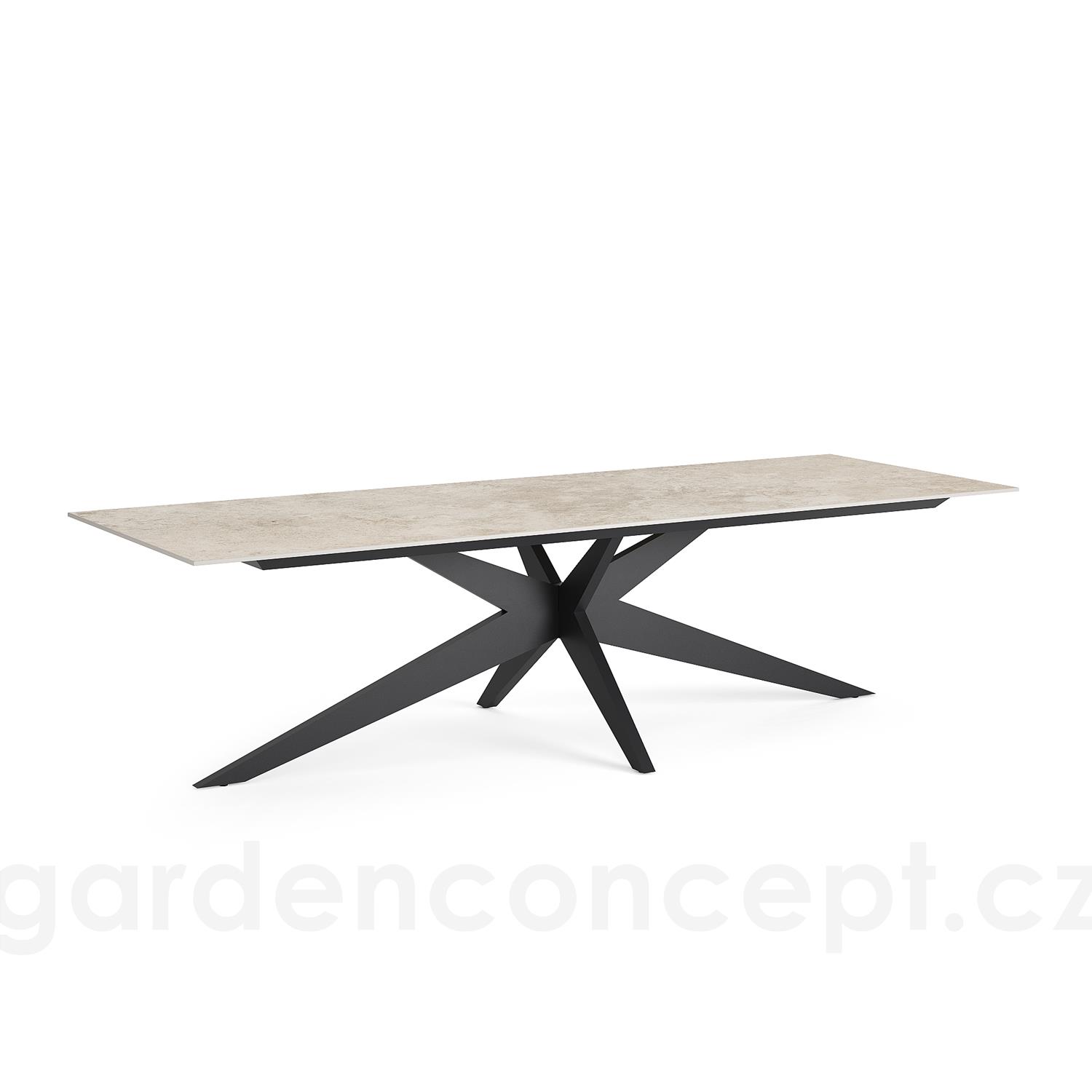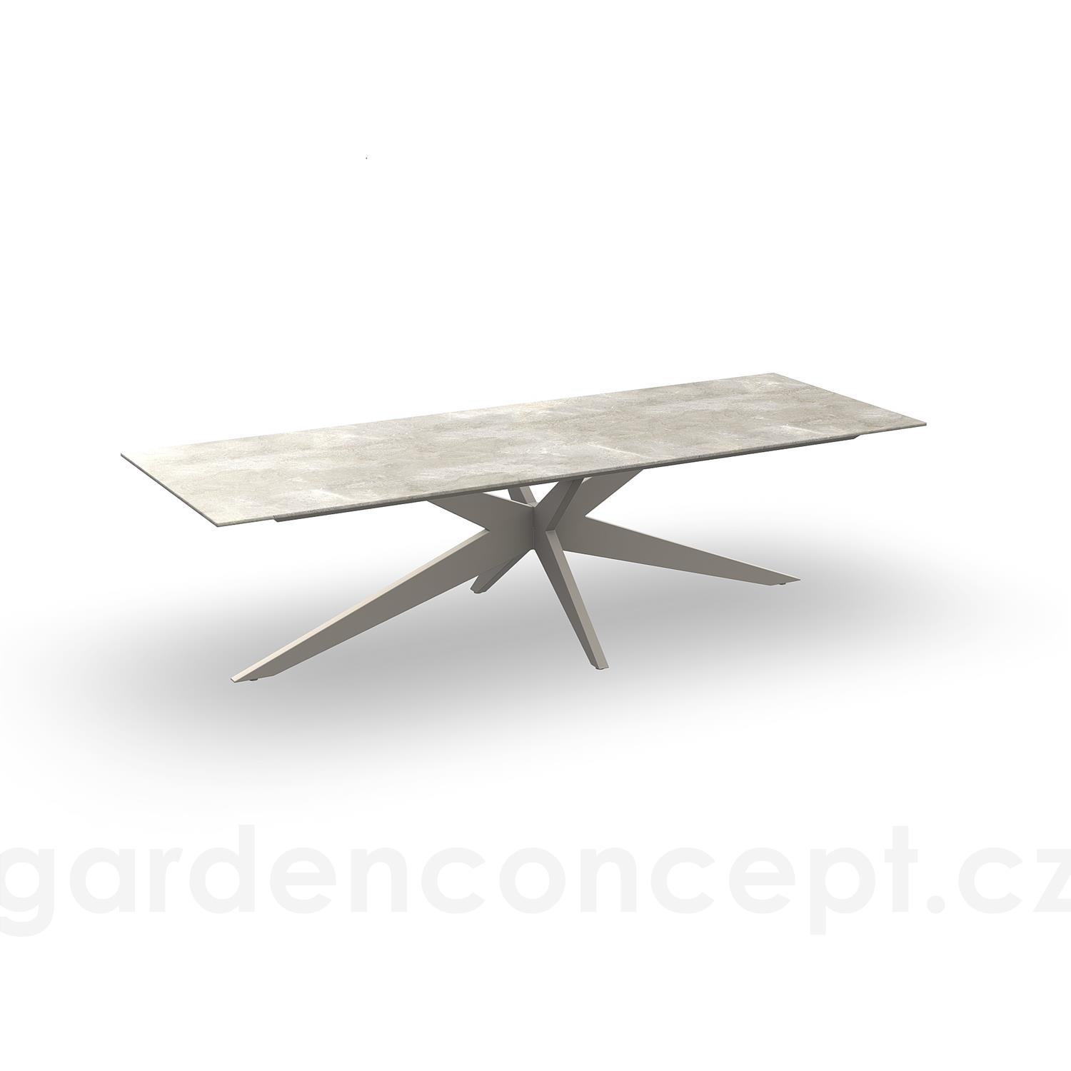 Jídelní stůl Yate, Jati Kebon, obdélníkový 280x100x73,2 cm, rám hliník barva sand mat, deska keramika 12mm dekor Paladium Grey