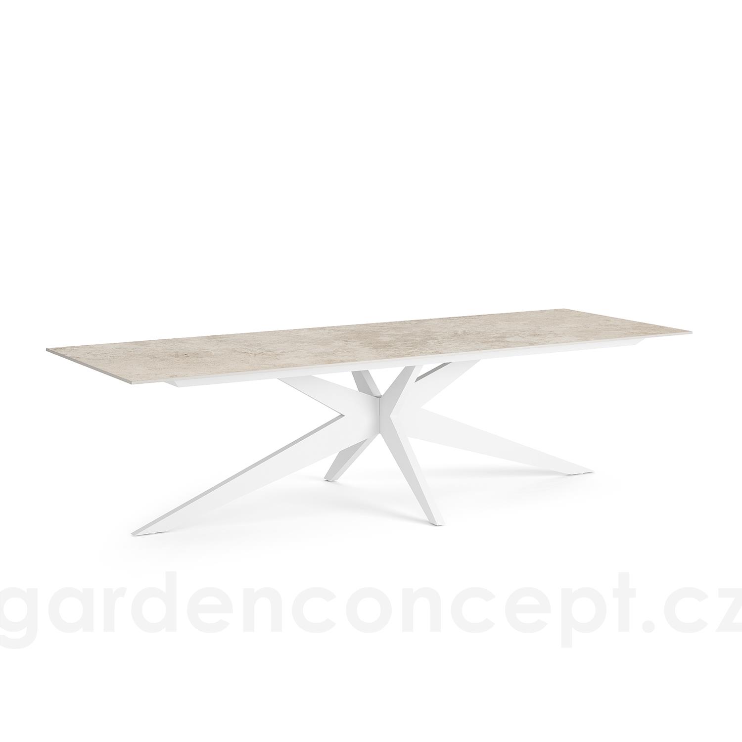 Jídelní stůl Yate, Jati Kebon, obdélníkový 280x100x73,2 cm, rám hliník barva white mat, deska keramika 12mm dekor Chianca