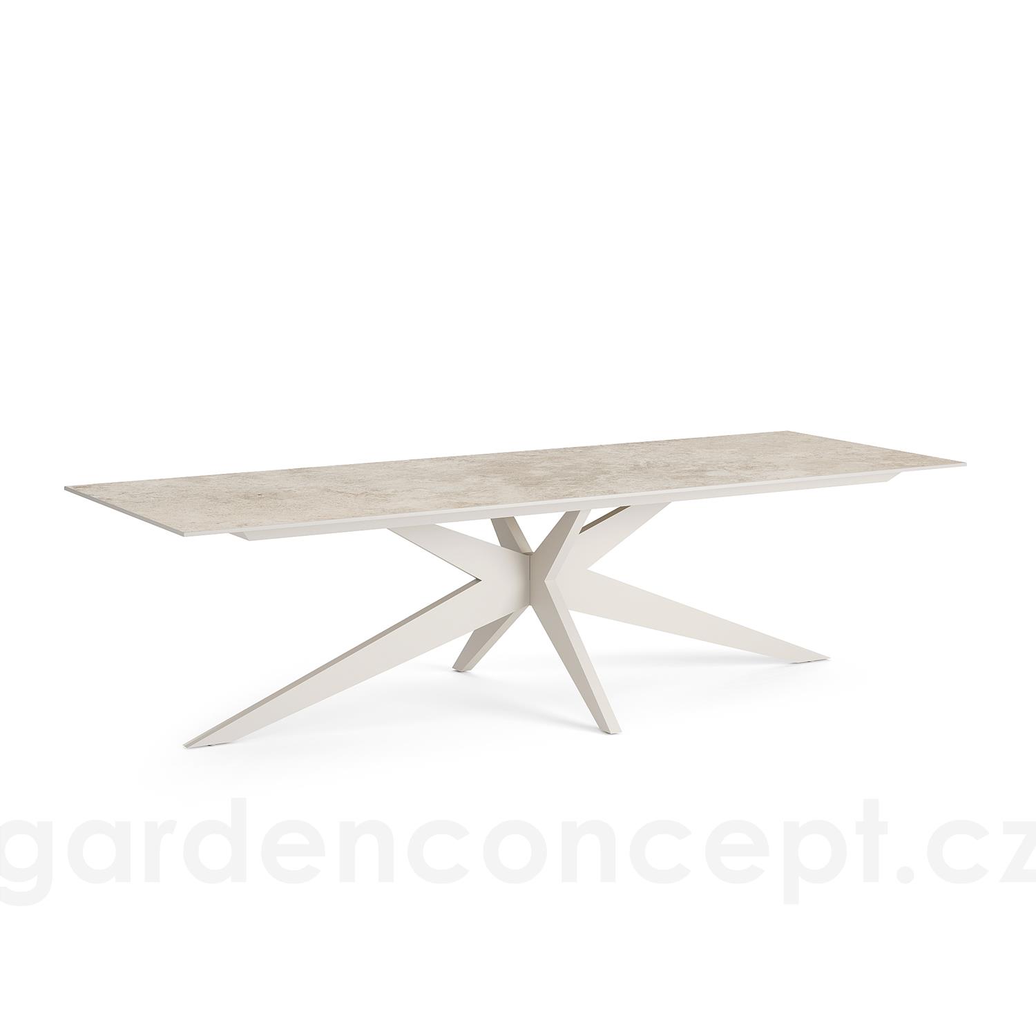 Jídelní stůl Yate, Jati Kebon, obdélníkový 280x100x73,2 cm, rám hliník barva white mat, deska keramika 12mm dekor Paladium Grey