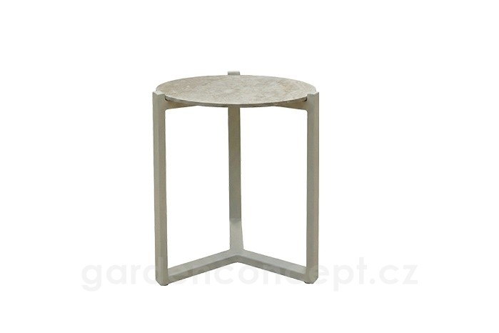Konferenční stolek Monaco, Apple Bee, kulatý 45x48h cm, rám hliník Oyster (krémová), deska keramický kompozit dekor Cream