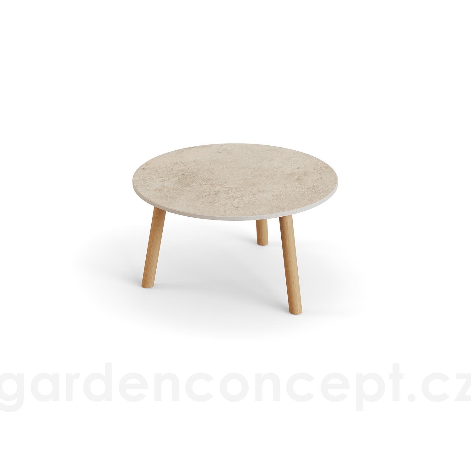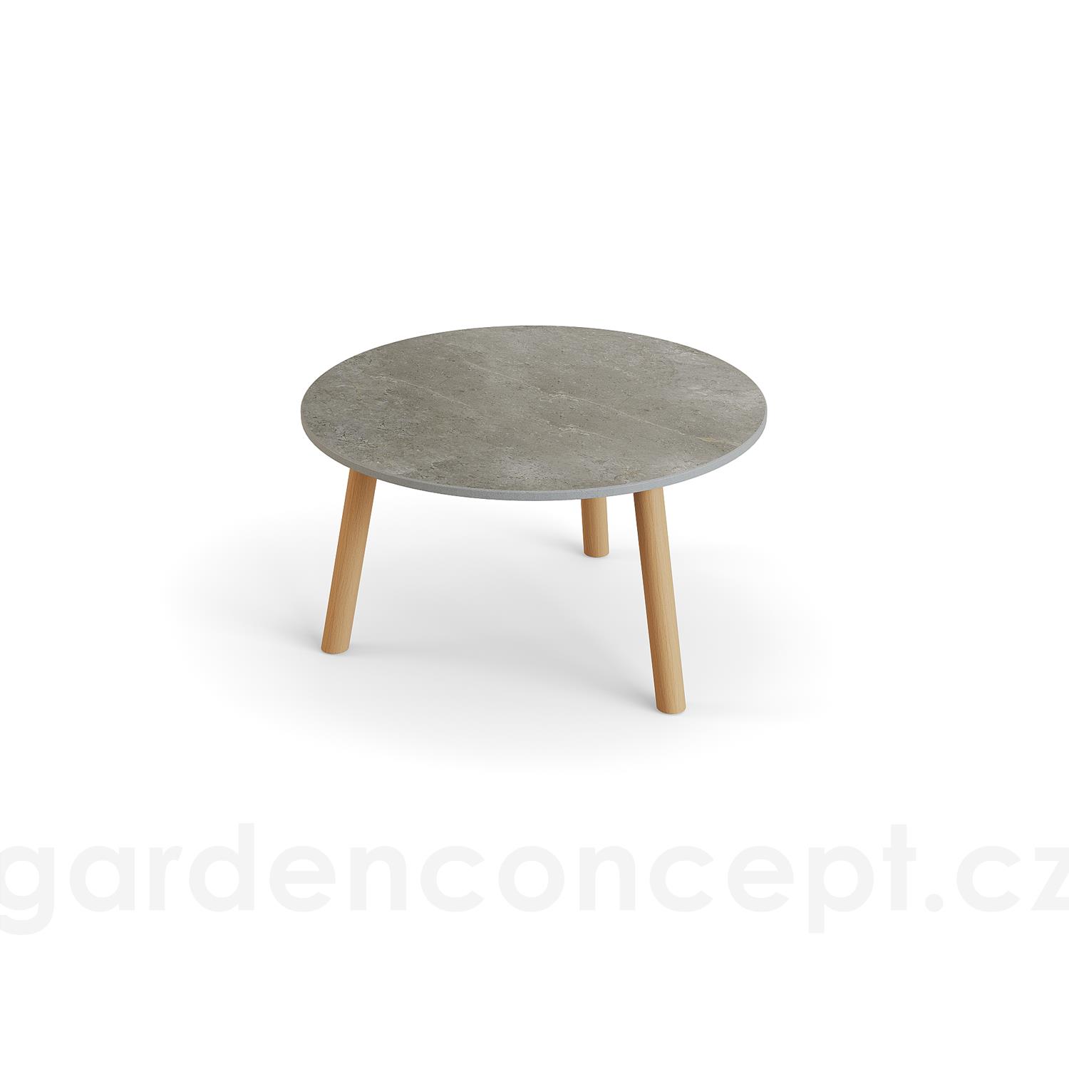 Konferenční stolek Ronda, Jati Kebon, kulatý 60x34,2 cm, rám teak, deska keramika 12mm dekor Paladium Grey