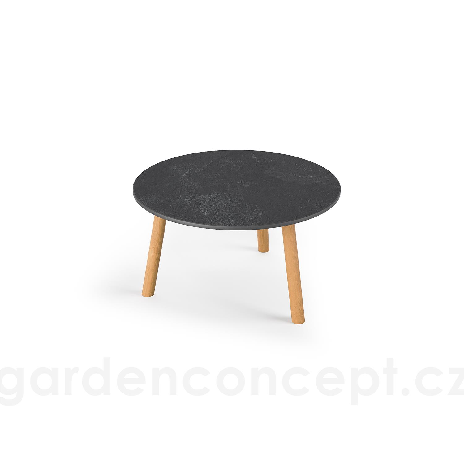 Konferenční stolek Ronda, Jati Kebon, kulatý 60x34,2 cm, rám teak, deska keramika 12mm dekor Slate Black