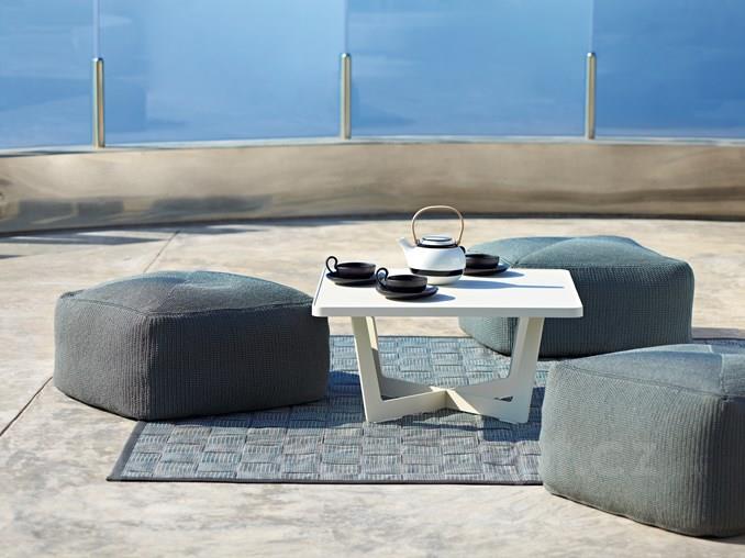 Hliníkový zahradní konferenční stolek kolekce Time-Out značky Cane-line. Stůl je celohliníkový. Barva: hnědo šedá (taupe), bílá (white), šedo černá (lava grey).