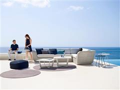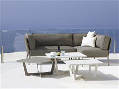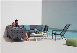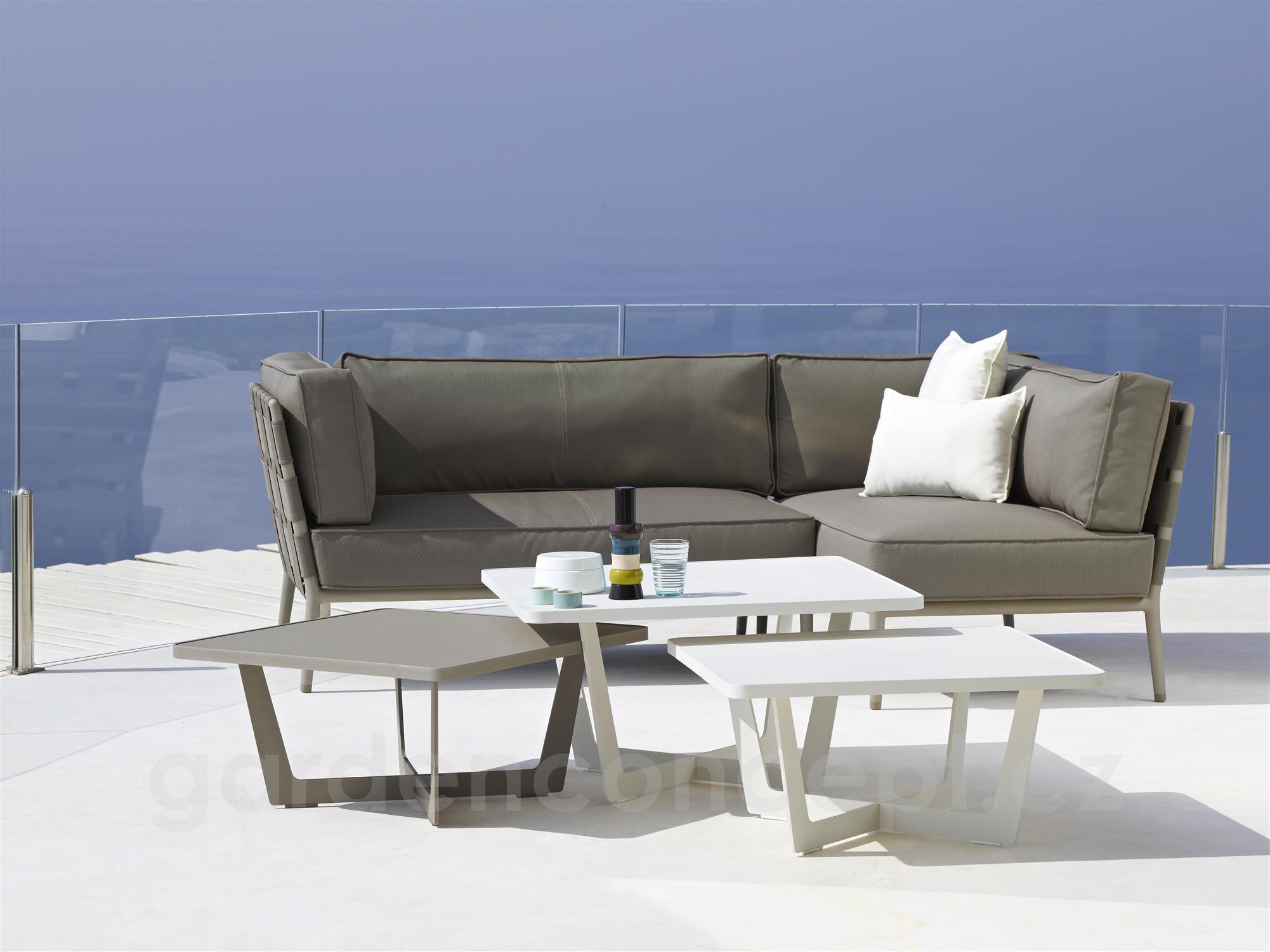 Hliníkový zahradní konferenční stolek kolekce Time-Out značky Cane-line. Konferenční stůl je celohliníkový. Barva: hnědo šedá (taupe), bílá (white), šedo černá (lava grey).