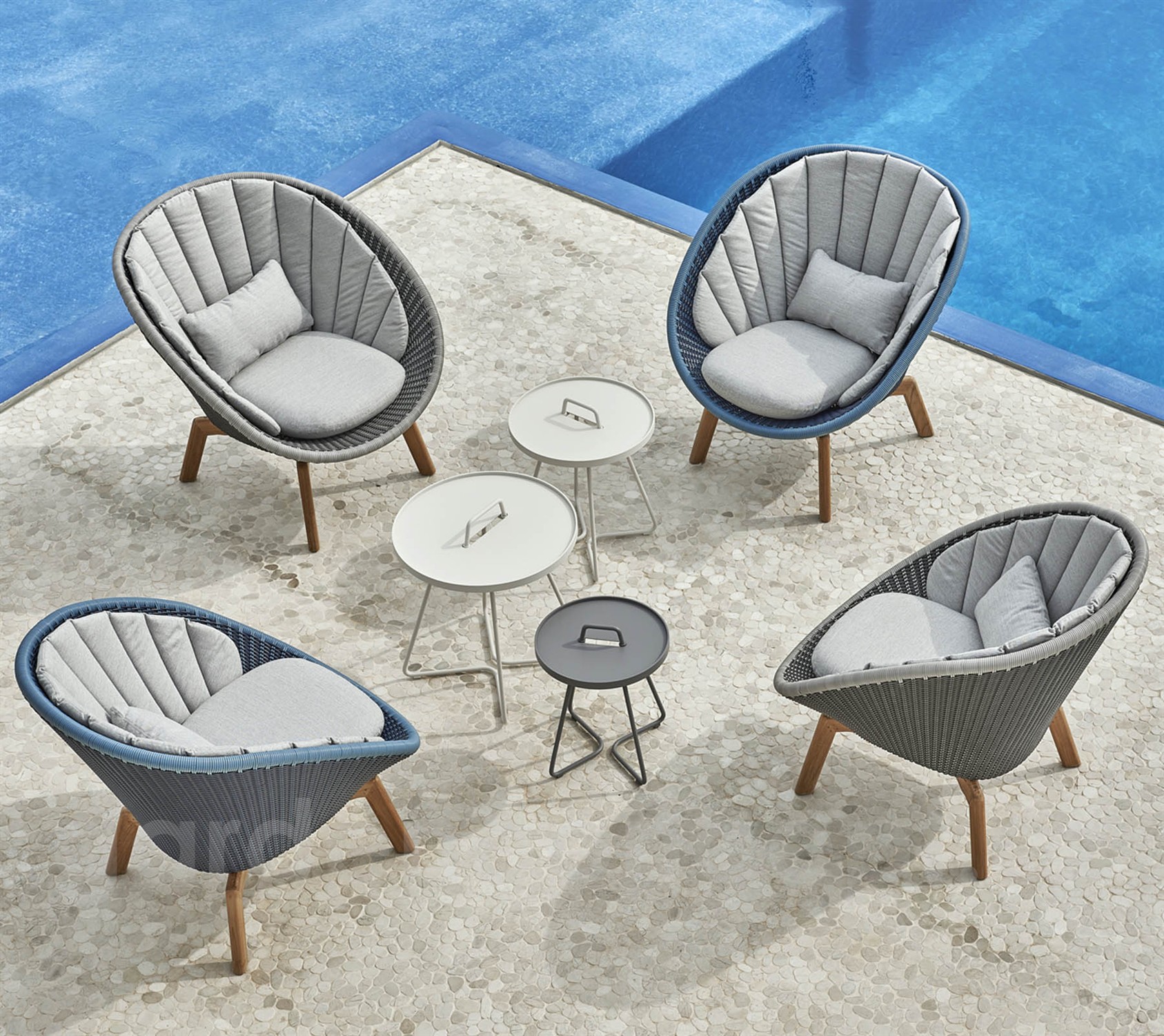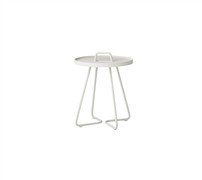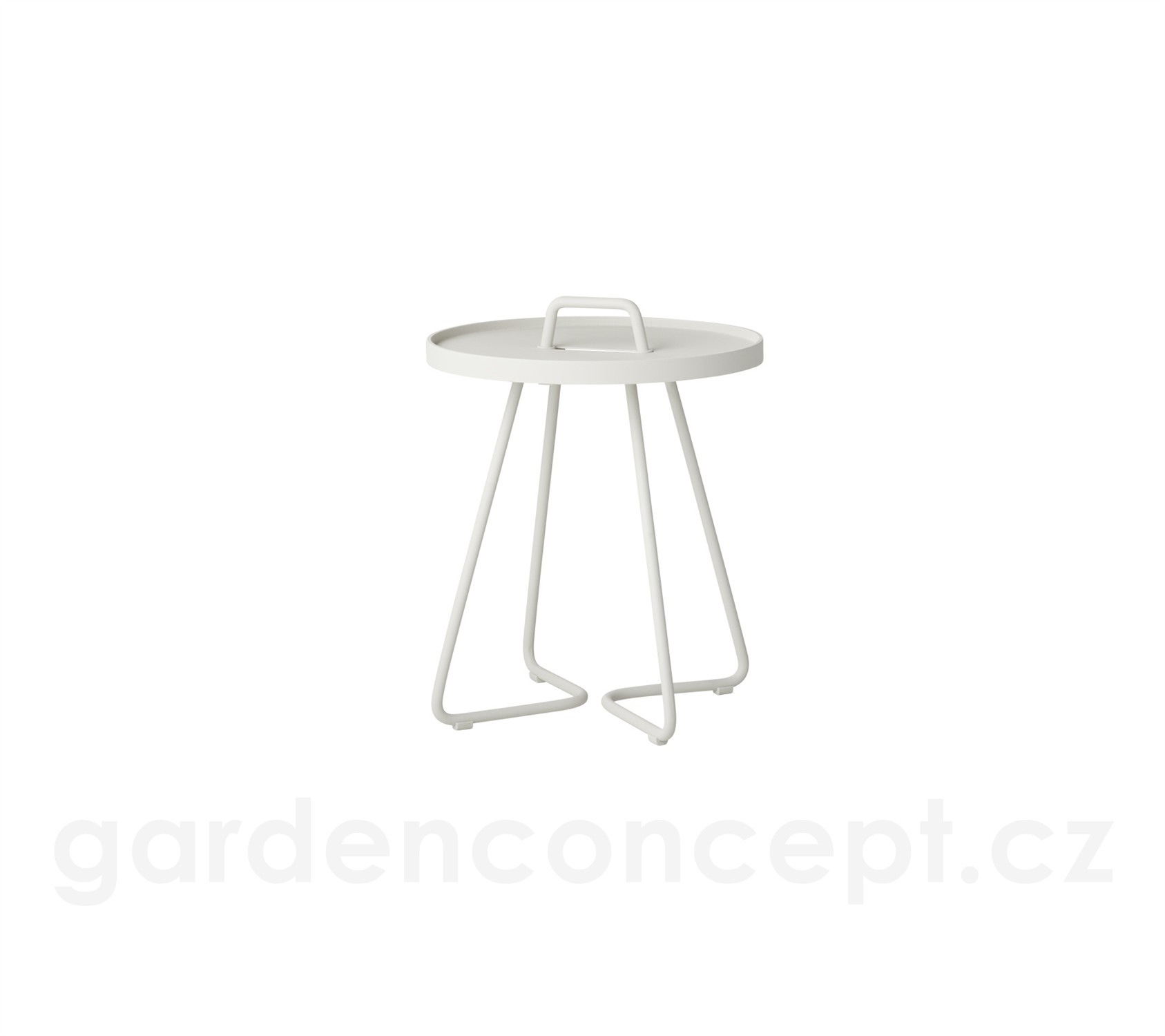 Designový venkovní odkládací boční stolek kolekce On-The-Move značky Cane-line. Stolek je celohliníkový. Lakovaný hliník je vysoce odolný a snadno udržovatelný.