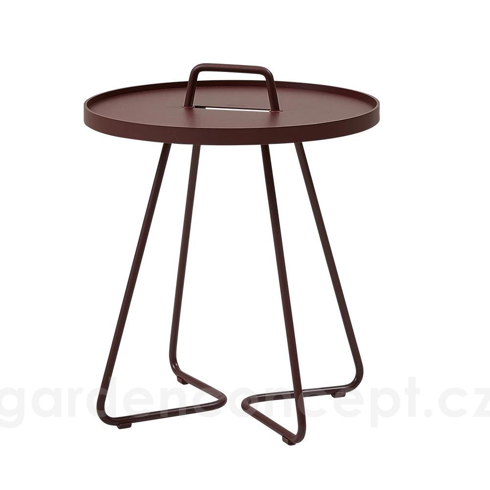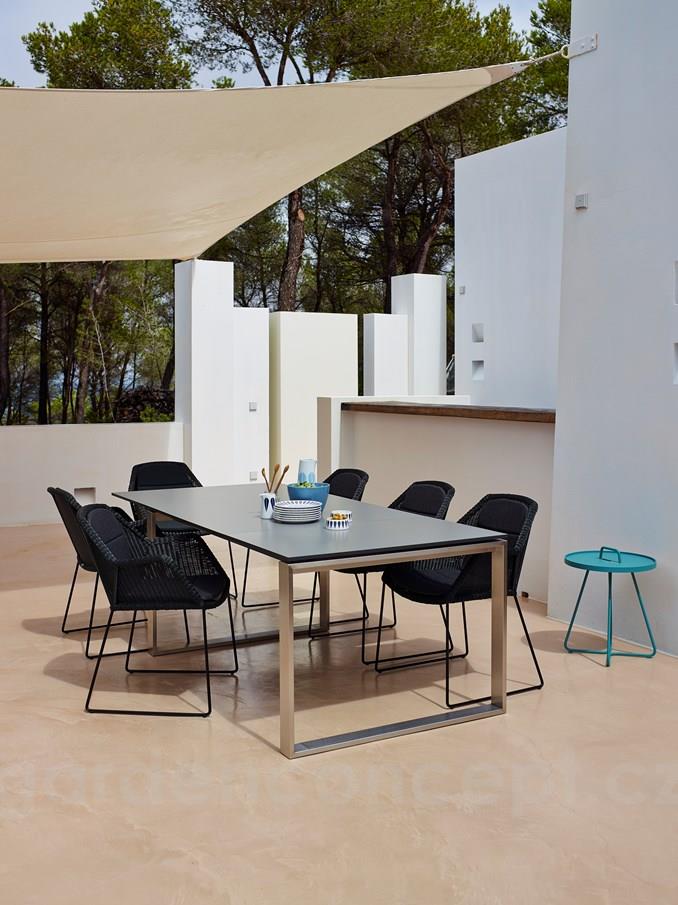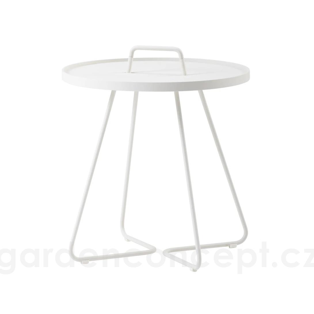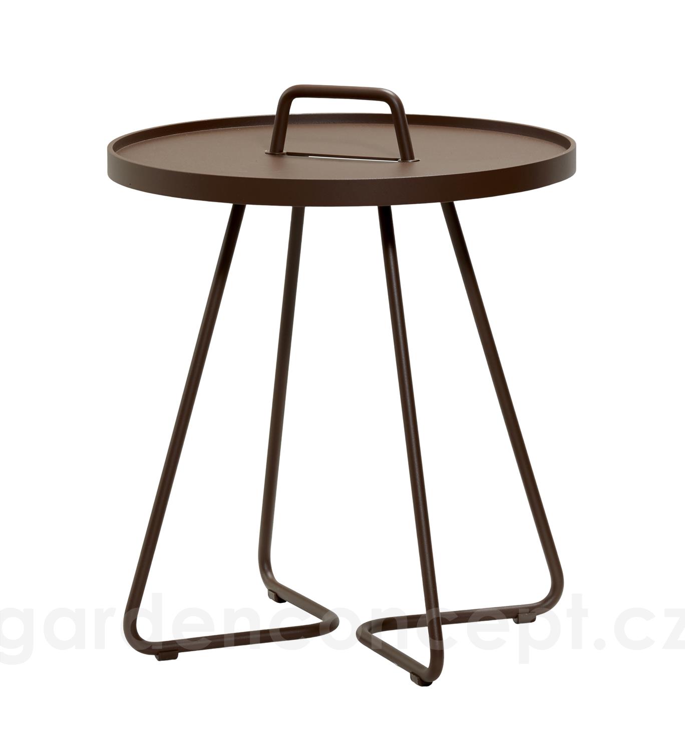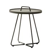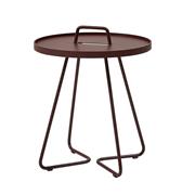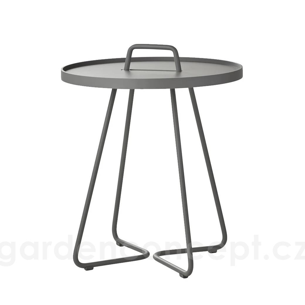 Hliníkový odkládací boční stolek kolekce On-The-Move značky Cane-line. Zahradní stolek je celohliníkový. Lakovaný hliník je vysoce odolný a snadno udržovatelný.
