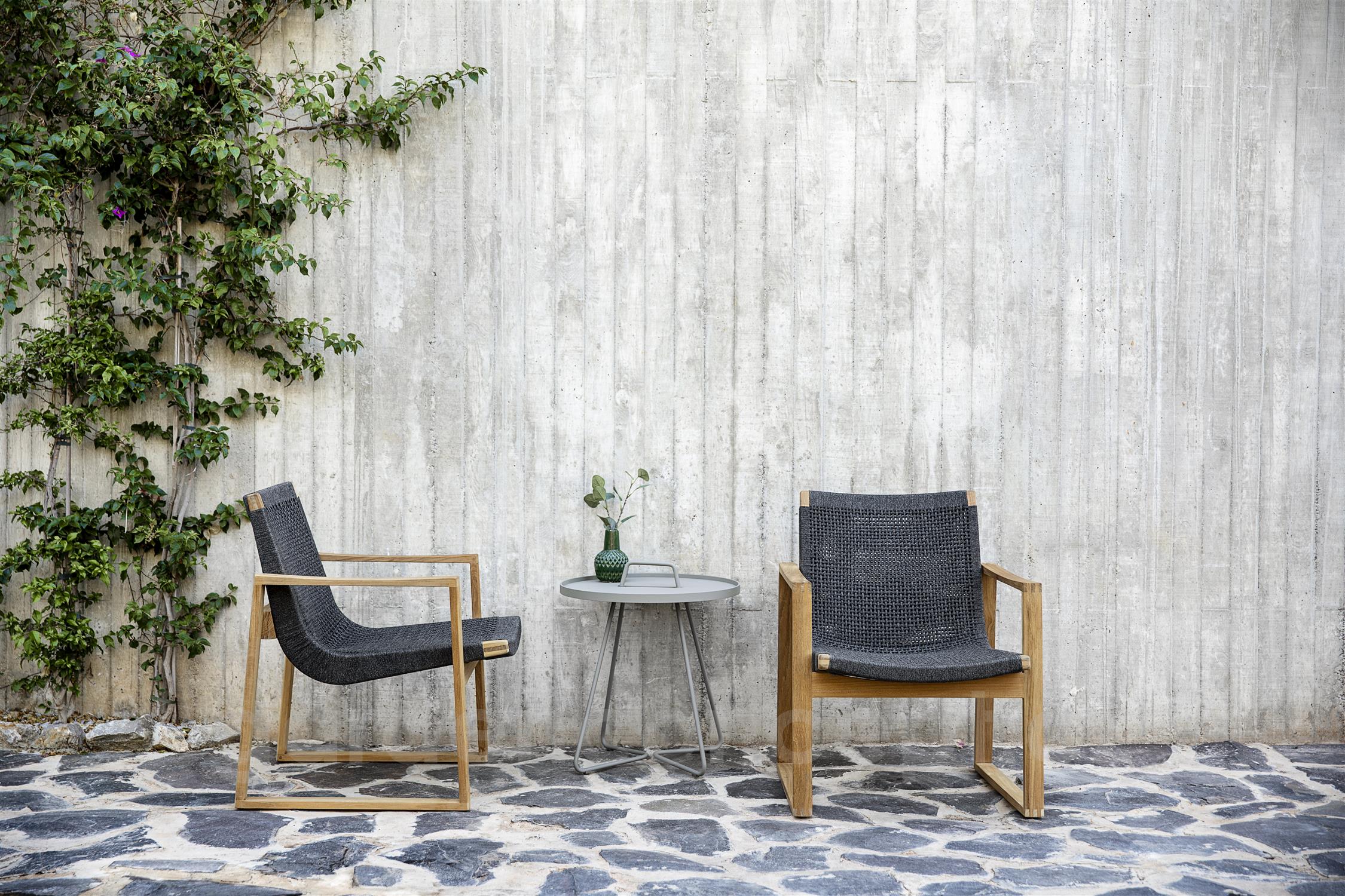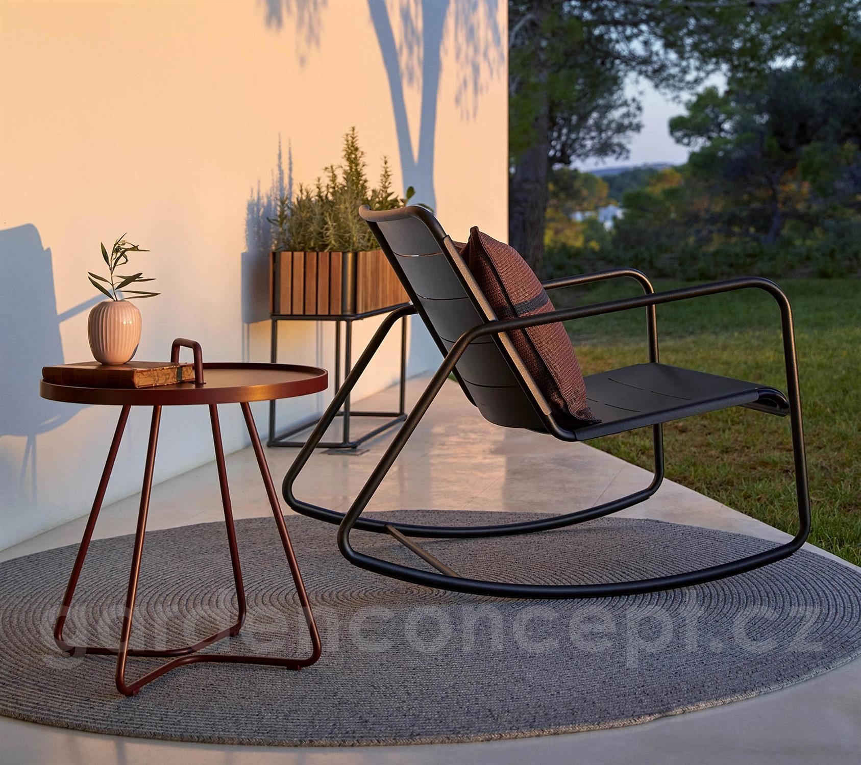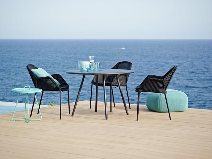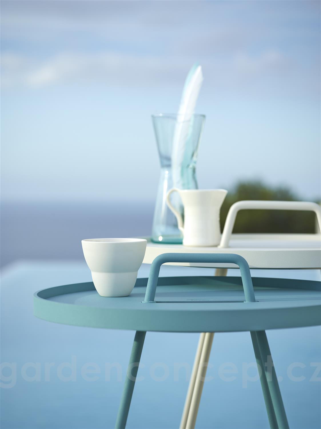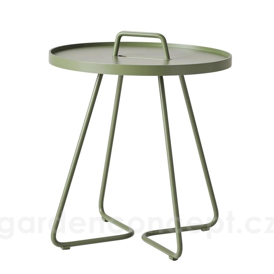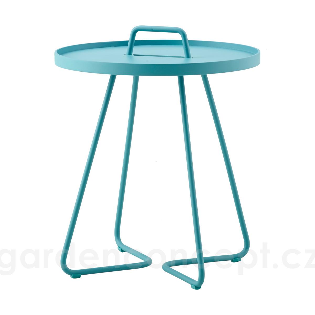 Hliníkový odkládací boční stolek kolekce On-The-Move značky Cane-line. Zahradní stolek je celohliníkový. Lakovaný hliník je vysoce odolný a snadno udržovatelný.