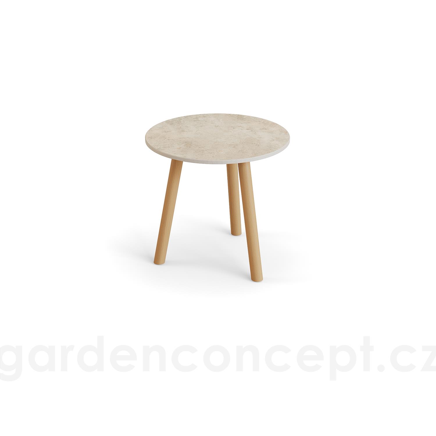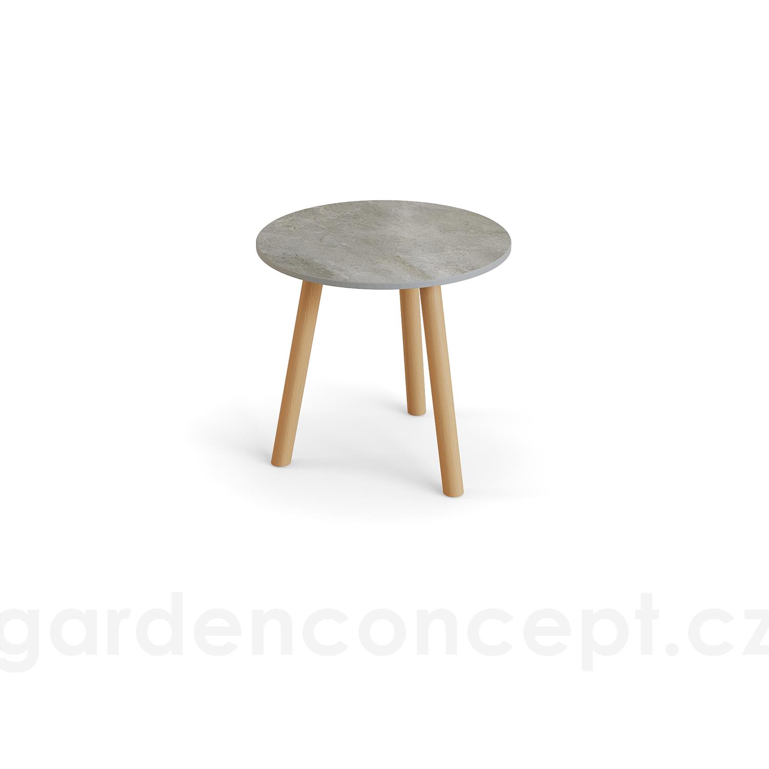 Odkládací stolek Ronda, Jati Kebon, kulatý 45x44,2 cm, rám teak, deska keramika 12mm dekor Paladium Grey
