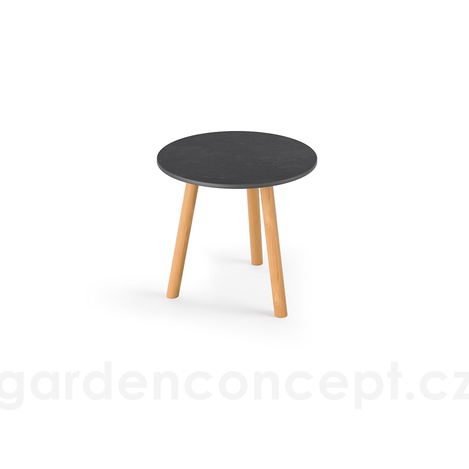 Odkládací stolek Ronda, Jati Kebon, kulatý 45x44,2 cm, rám teak, deska keramika 12mm dekor Slate Black
