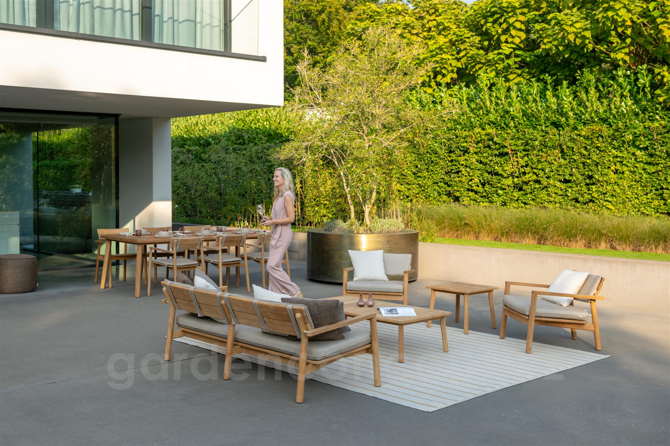 Venkovní teakový odkládací stolek z kolekce Lynn Teak od belgické značky Jati Kebon.