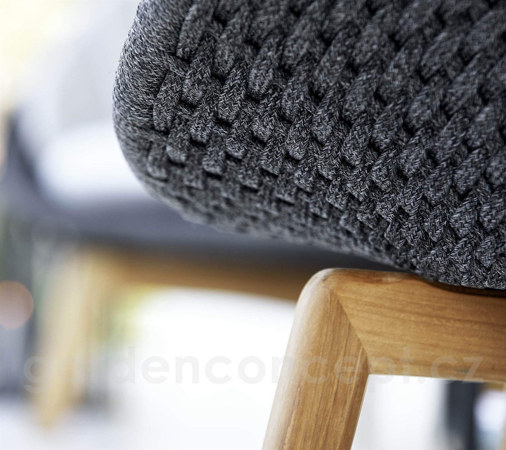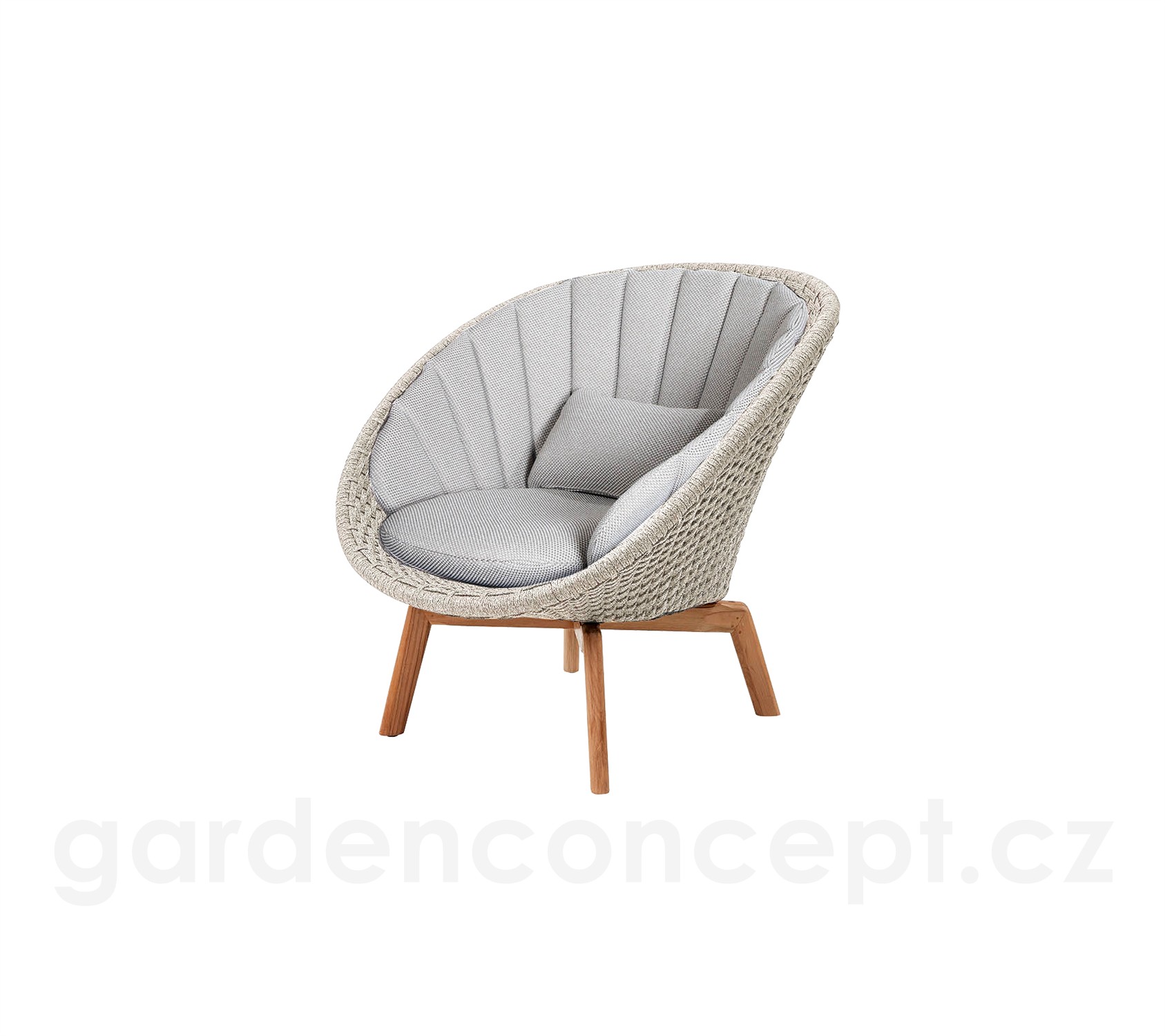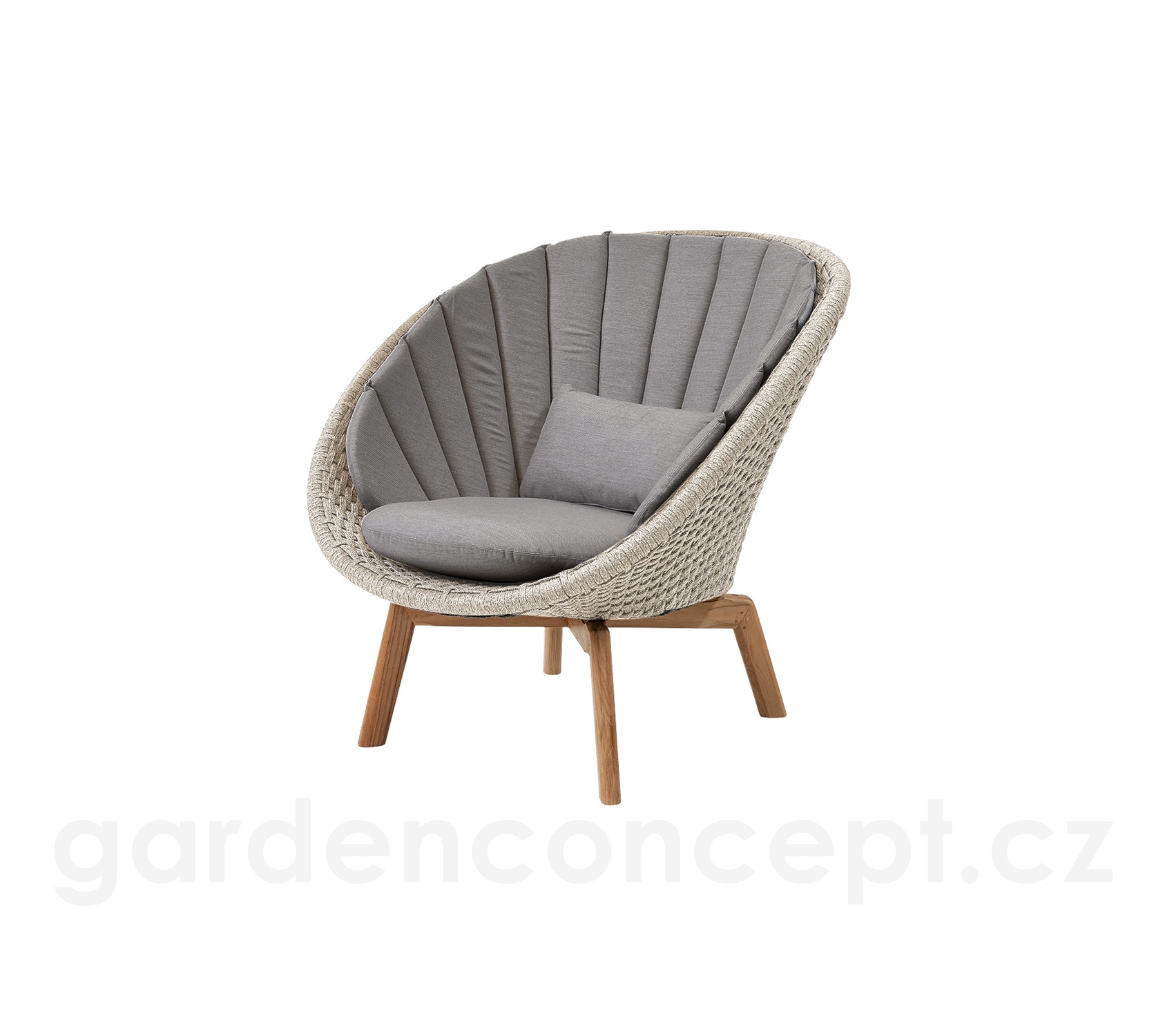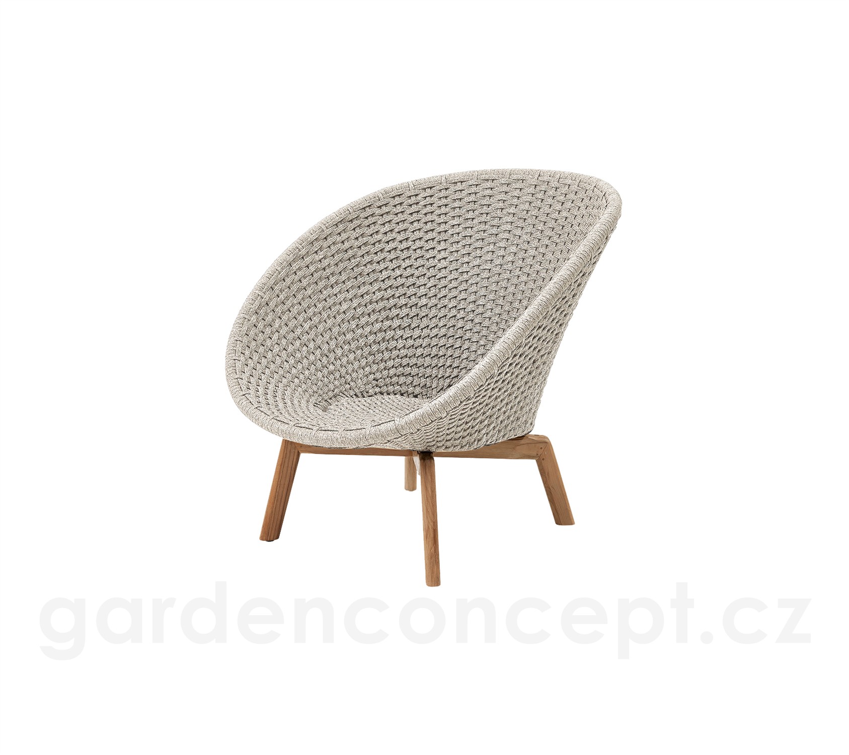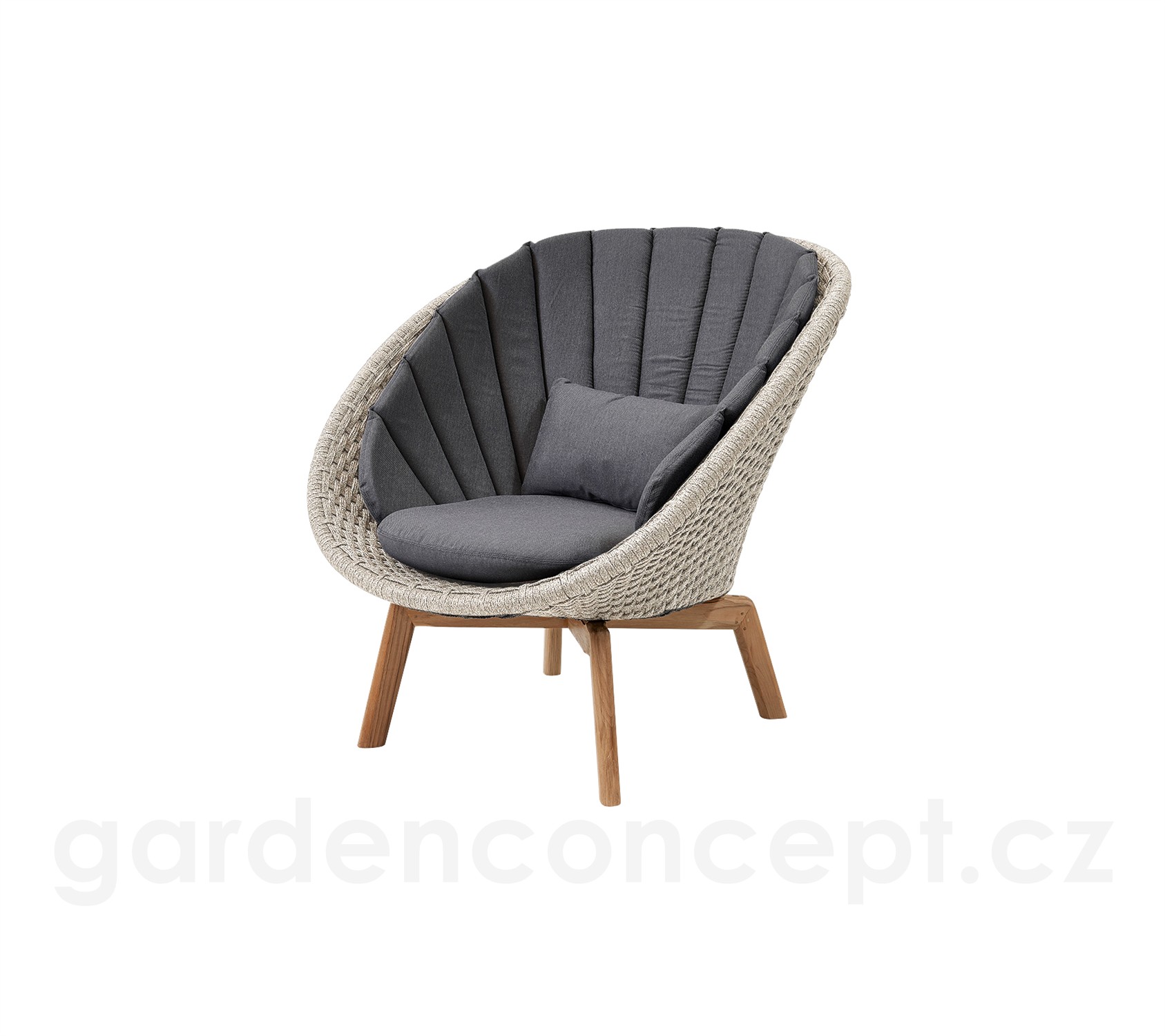 Nízké křeslo Peacock, Cane-line, 91x93x87 cm, nohy teak, rám hliník, výplet lanko Soft Rope dark grey, bez polstrů