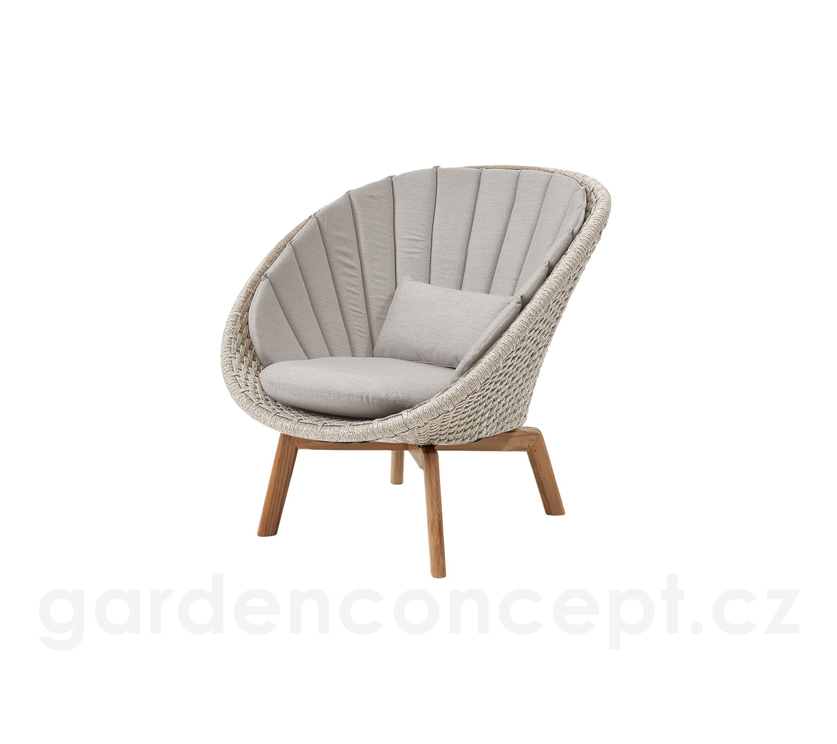 Nízké křeslo Peacock, Cane-line, 91x93x87 cm, nohy teak, rám hliník, výplet lanko Soft Rope sand, bez polstrů