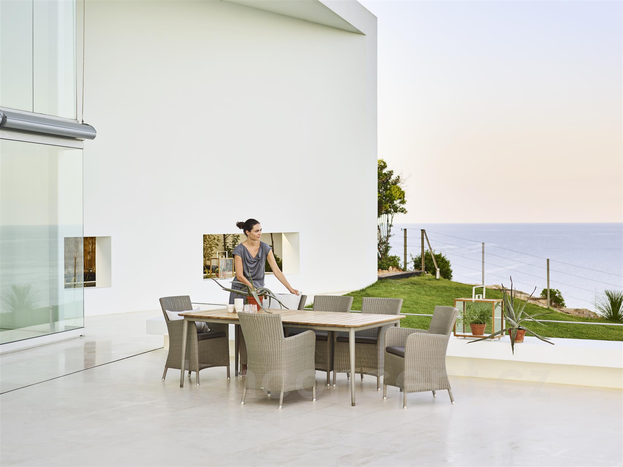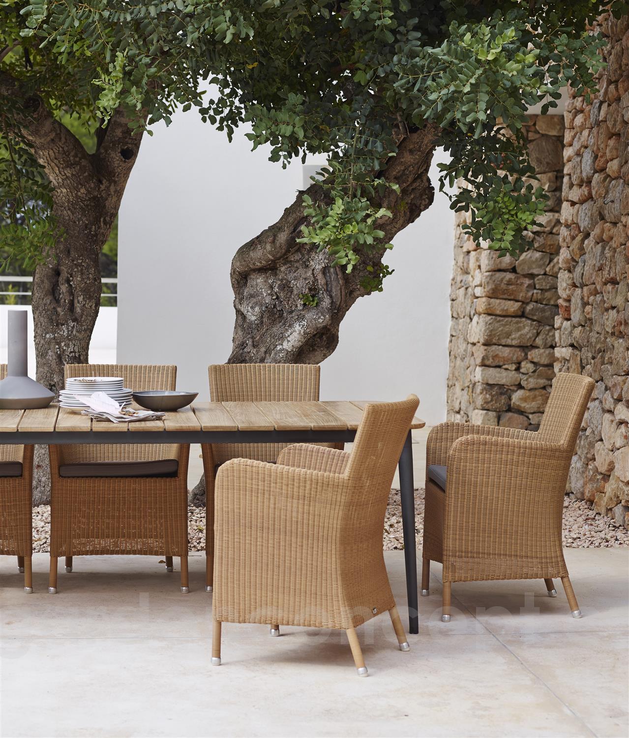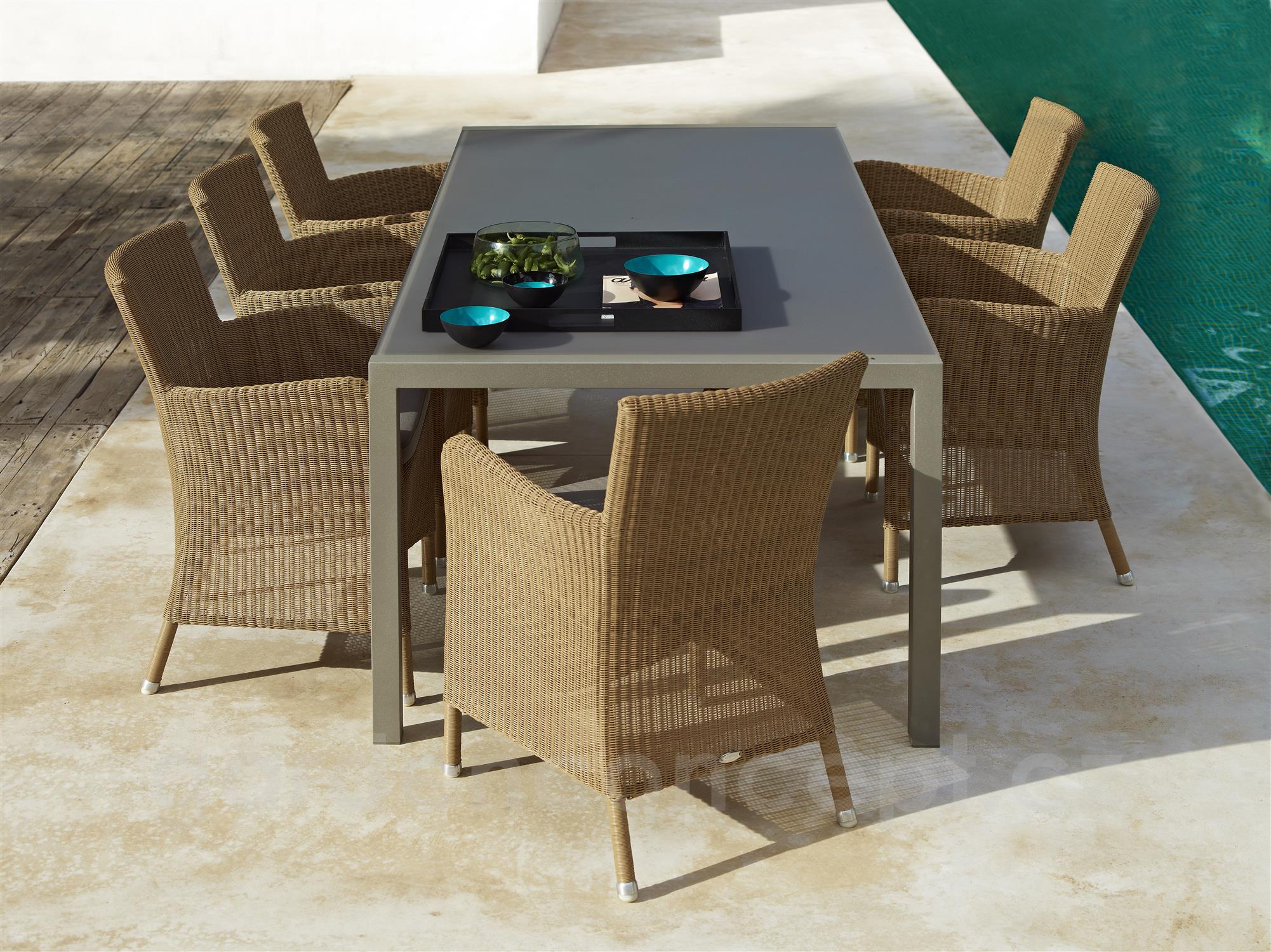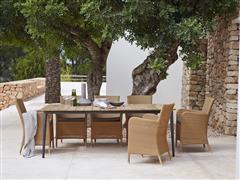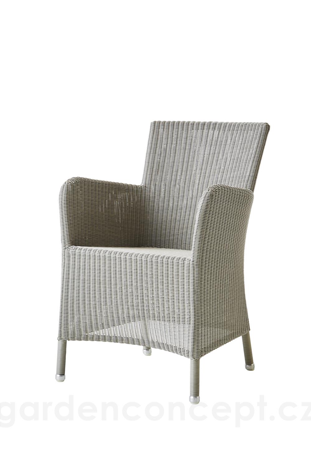 Ratanové zahradní jídelní křeslo kolekce Hampsted značky Cane-line. Konstrukce designového jídelního křeslo je z hliníku. Výplet včetně područek z umělého ratanu. V několika barevných variantách.