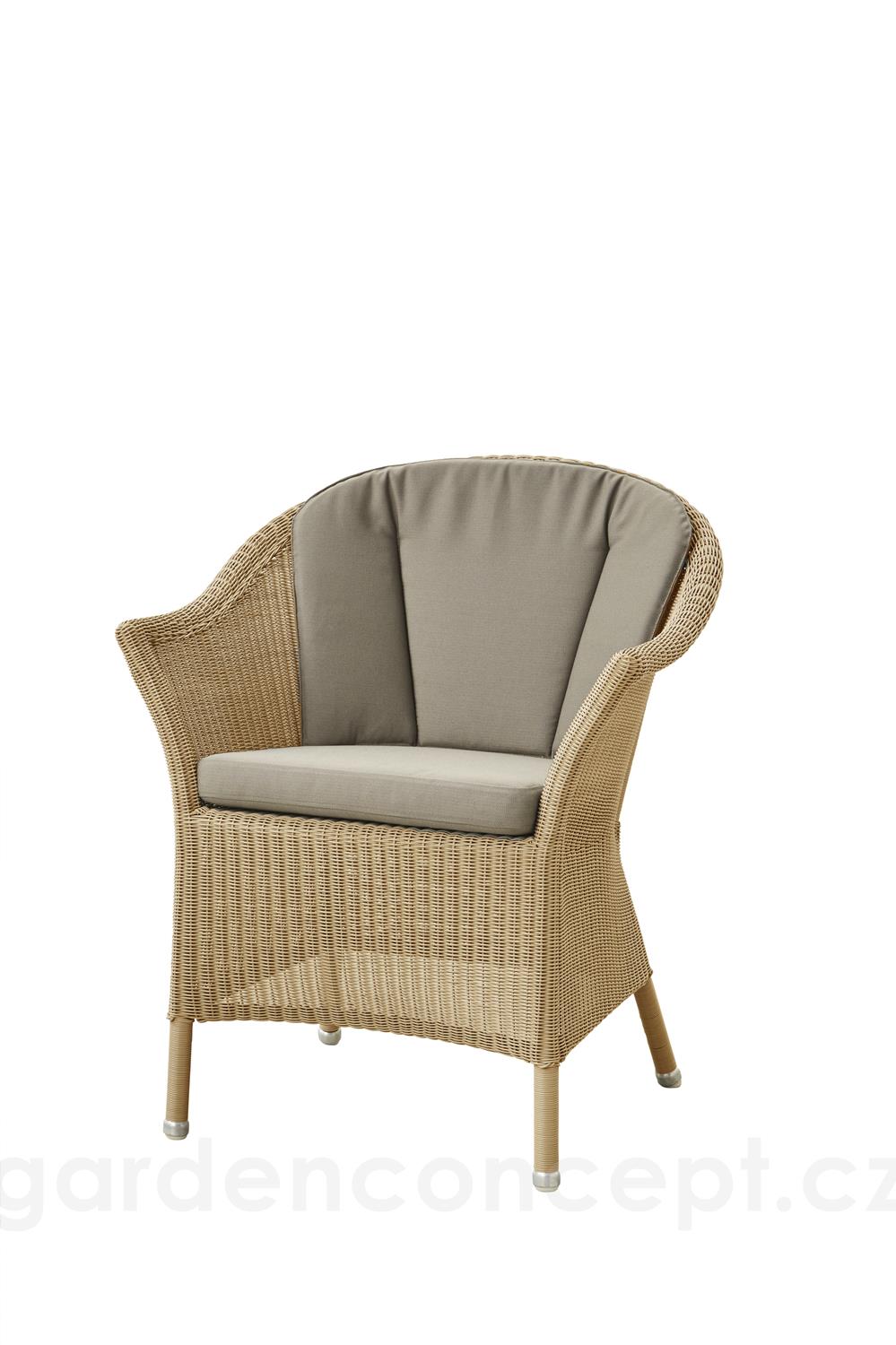 Zahradní ratanové jídelní křeslo Lansing značky Cane-line. Hliníková konstrukce zahradního jídelního křesla je opletena umělým ratanem.