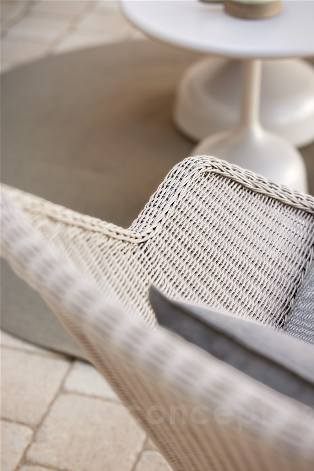 Rám nízkého křesla je z hliníku. Výplet z umělého ratanu (Cane-line Weave).